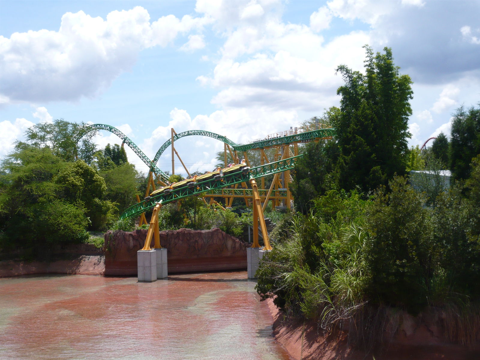 Von der Fahrt her ist die Schwesterbahn Griffon in Williamsburg dank des zweiten Immelmanns und des etwas spannenderen Schlussspurts ein ganz kleines Stückchen besser als SheiKra, dafür ist hier wie schon im anderen Bericht erwähnt die Inszenierung des zweiten Sturzes in eine Art Brunnenschacht und das Wasserbecken ein bisschen gelungener gestaltet. Beides sind aber absolute Top-Bahnen und ich bin einfach froh, dass ich auf dieser Reise in beiden Busch Gardens und auf beiden Bahnen in den Genuss von zahlreichen Weltklasse-Fahrten ohne Wartezeit gekommen bin.
