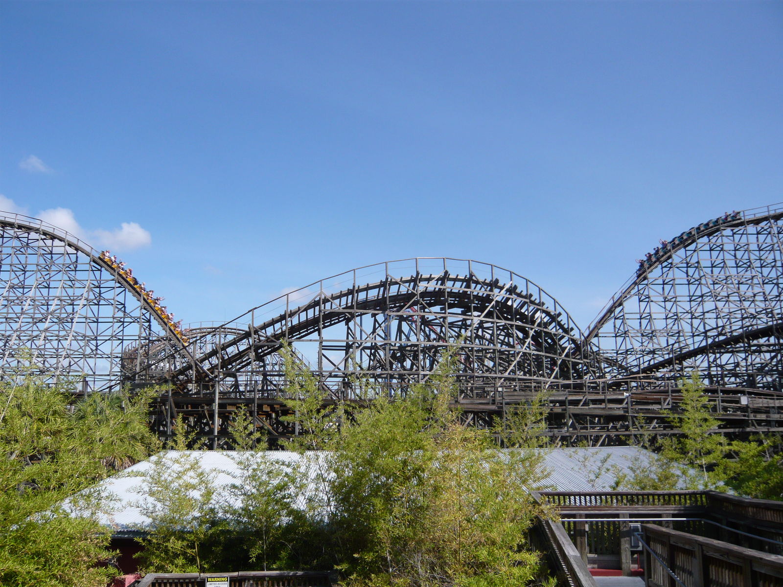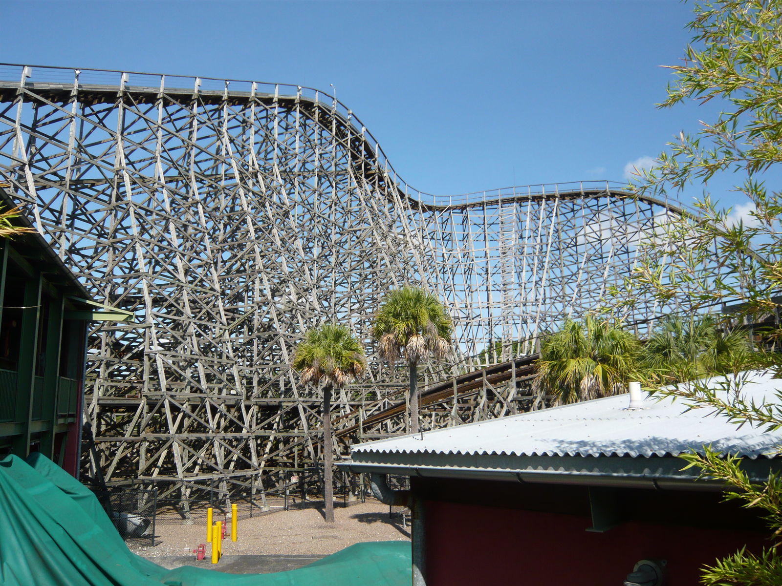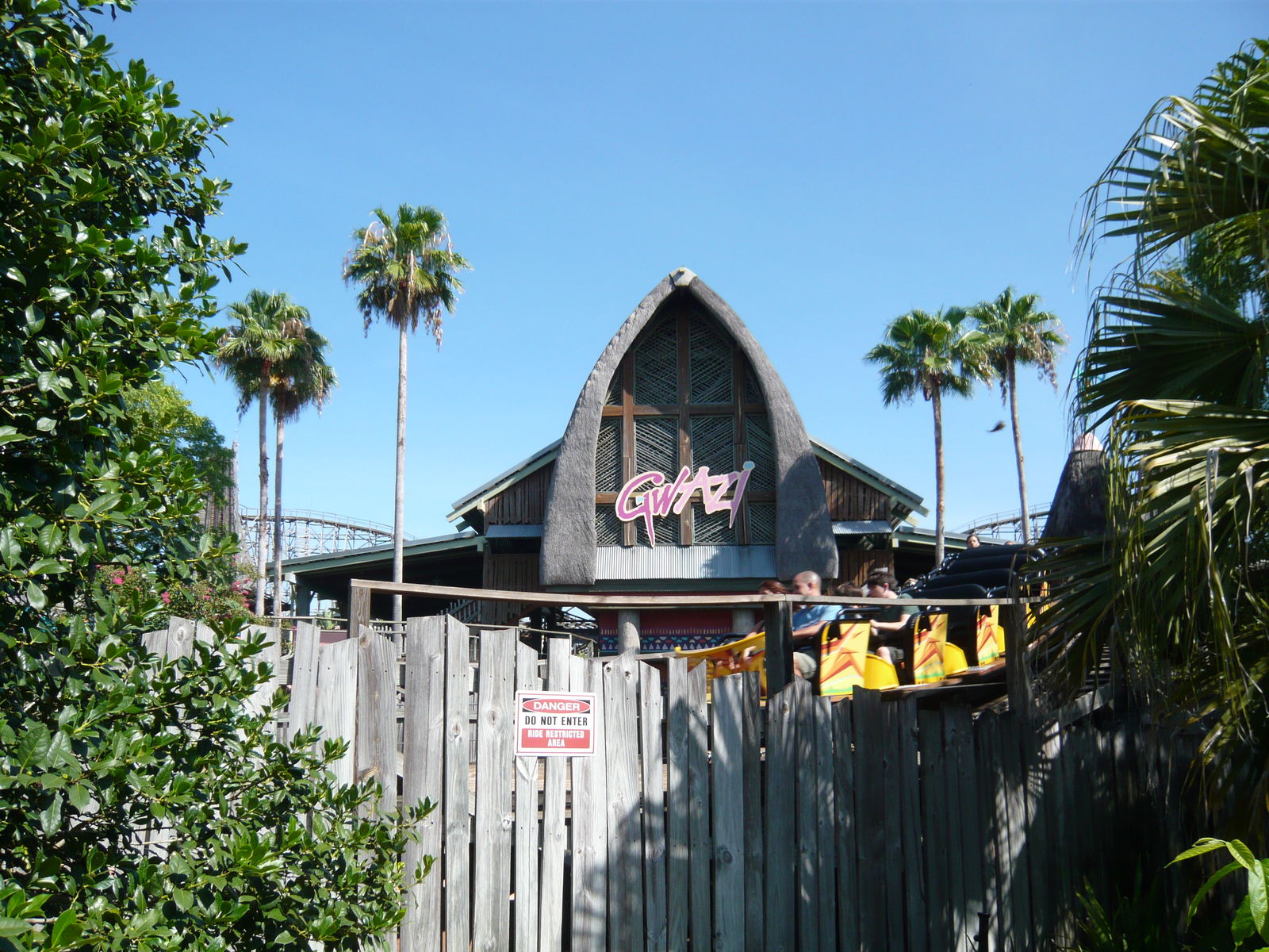 Nun geht es also weiter zur Doppelholzachterbahn Gwazi, welche mehr oder weniger direkt beim Eingangsbereich des Parks liegt und auf diese Saison hin ja neue und sehr schnieke Millennium Flyer-Züge erhalten hat. Hier war bei all unseren Fahrten Walk-on angesagt, und damit hat sich das Phänomen meiner bisherigen Busch Gardens-Besuche wiederholt: Nur an den Neuheiten gab es jeweils Wartezeiten, im Rest des Parks ist bis zum frühen Nachmittag Walk-on angesagt gewesen. War 2005 bei SheiKra auch so.