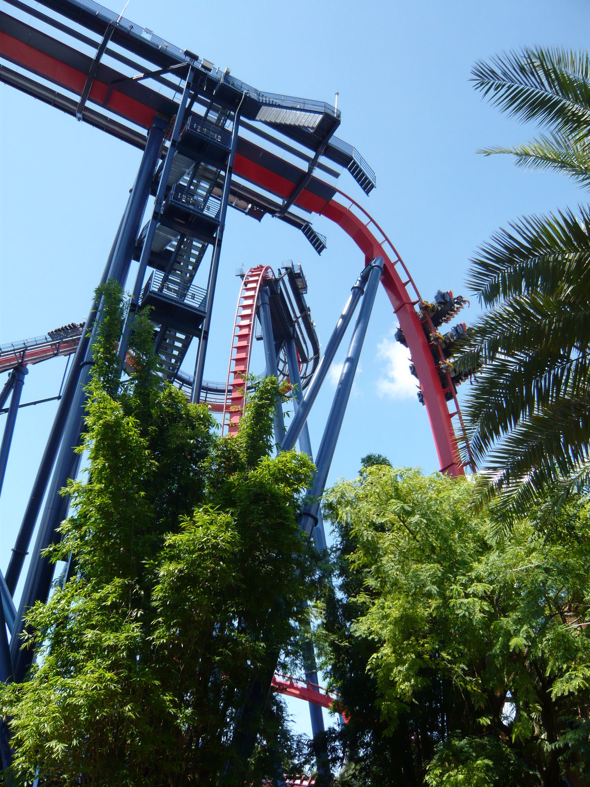 Inverter immer noch ungeschlagenen und stattlichen sieben Inversionen werden mit einem schlicht unglaublichen Tempo und Sanftheitsgrad abgespult. Einfach herrlich, wie man im ersten Teil hoch und elegant durch die Luft gewirbelt wird und nach der Bremse dann durch die extrem engen Gräben im Boden flitzt. Die Highlights sind für mich das