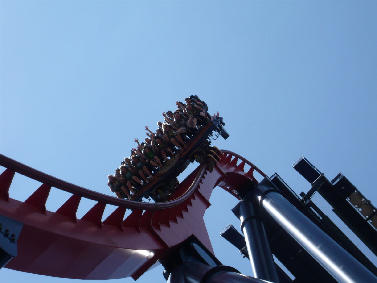 Immelmann, die Beckendurchfahrt... Grandios! Zum Fahren wie zum Ansehen ein absolutes Sahnestück. Wie bei Griffon ist auch hier die mittlere Zugreihe etwas unspektakulär: für Hangtime und furchterregende Visuals muss man in die erste Reihe, hinten gibts dafür