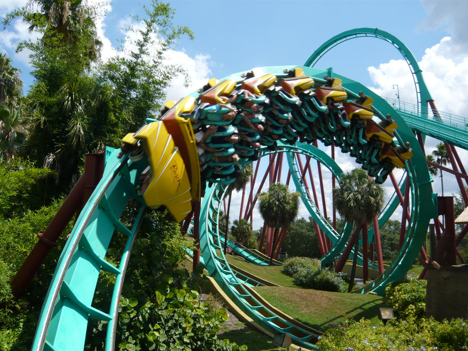 G-Rolle, die letzte brutale Kobrarolle auf dieser Reise, herrlich in die Wiese eingebettete und verwirrende Interlocking Corkscrews, sowie ein schönes Tunnel-