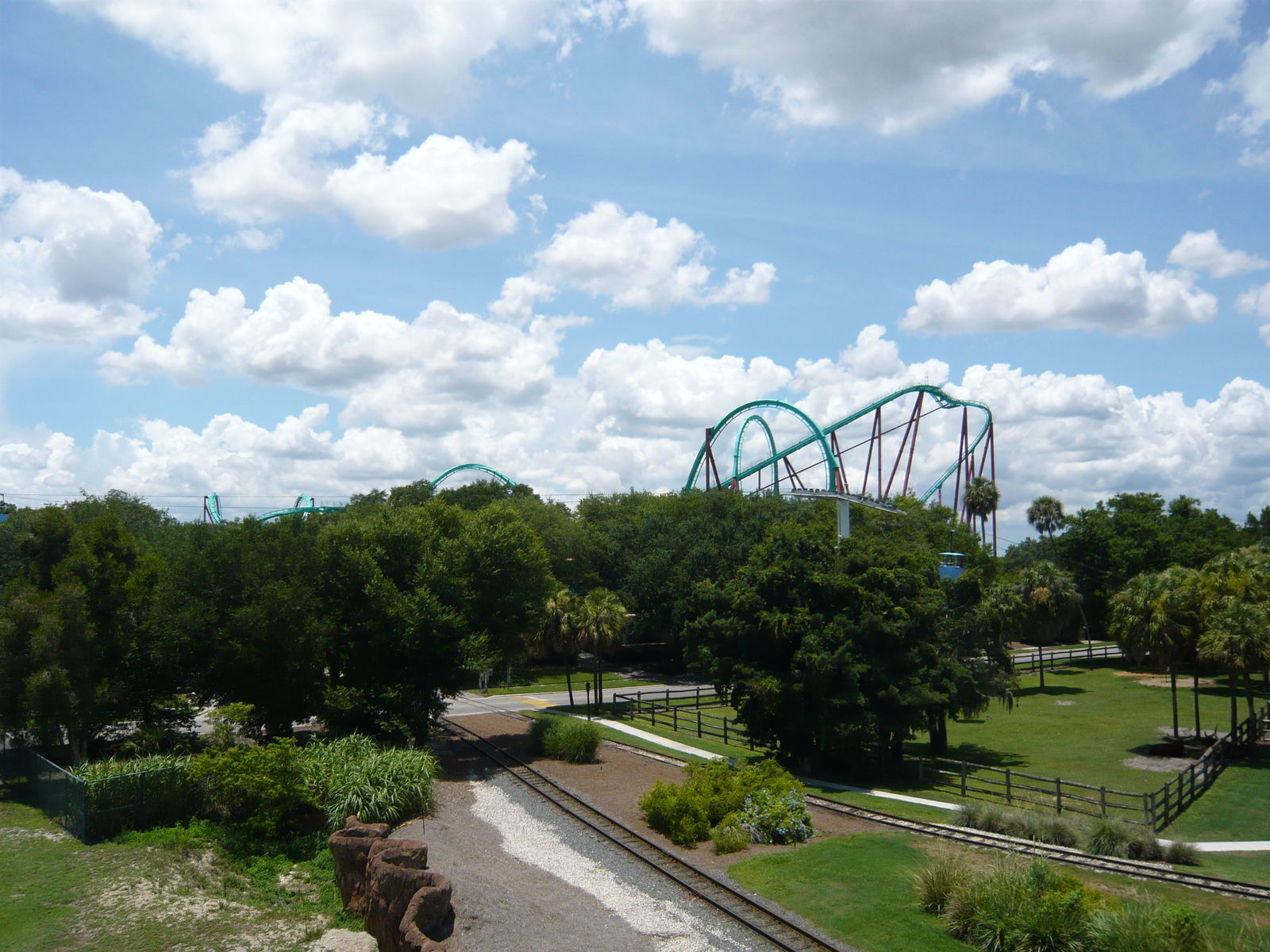 Nach einigen Wiederholungsfahrten mit den dortigen Achterbahnen hopsten wir dann wieder in die Parkeisenbahn und fuhren zum Eingangsbereich zurück. Nach letzten Fotos und Souvenirkäufen verabschiedeten wir uns dann langsam aber sicher von den immer noch sensationellen Busch Gardens, dieser einmaligen und grandiosen Mischung aus Freizeitpark und Zoo. Ich bin jedesmal einfach aufs Neue begeistert von diesem Park! Sensationelle Coaster, grosszügig und verblüffend schön gestaltete Tierhabitate und Gärten, die wunderschöne Afrika-Thematisierung und das bei typischem Florida-Wetter einfach stimmige Flair haben auch bei diesem Besuch für einen tollen Tag voller Spass gesorgt. Ein krönender Abschluss der Parks auf unserem diesjährigen USA-Roadtrip!