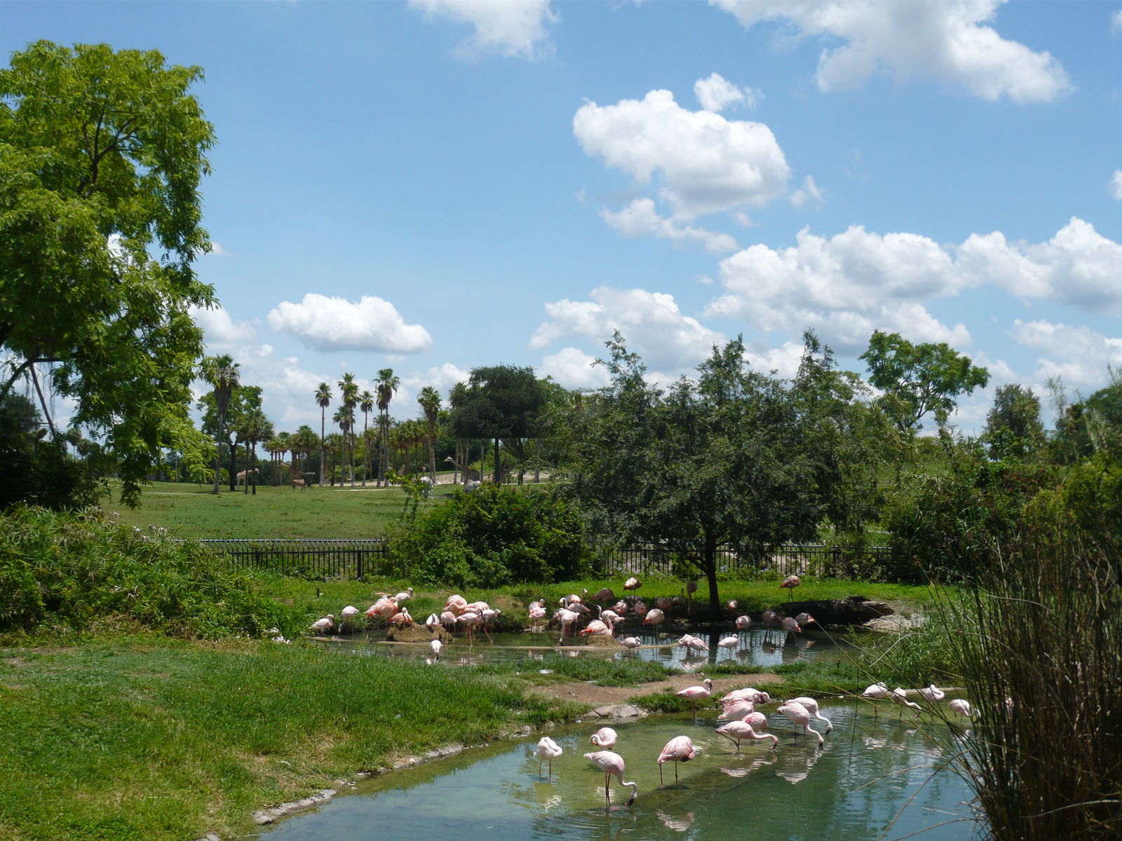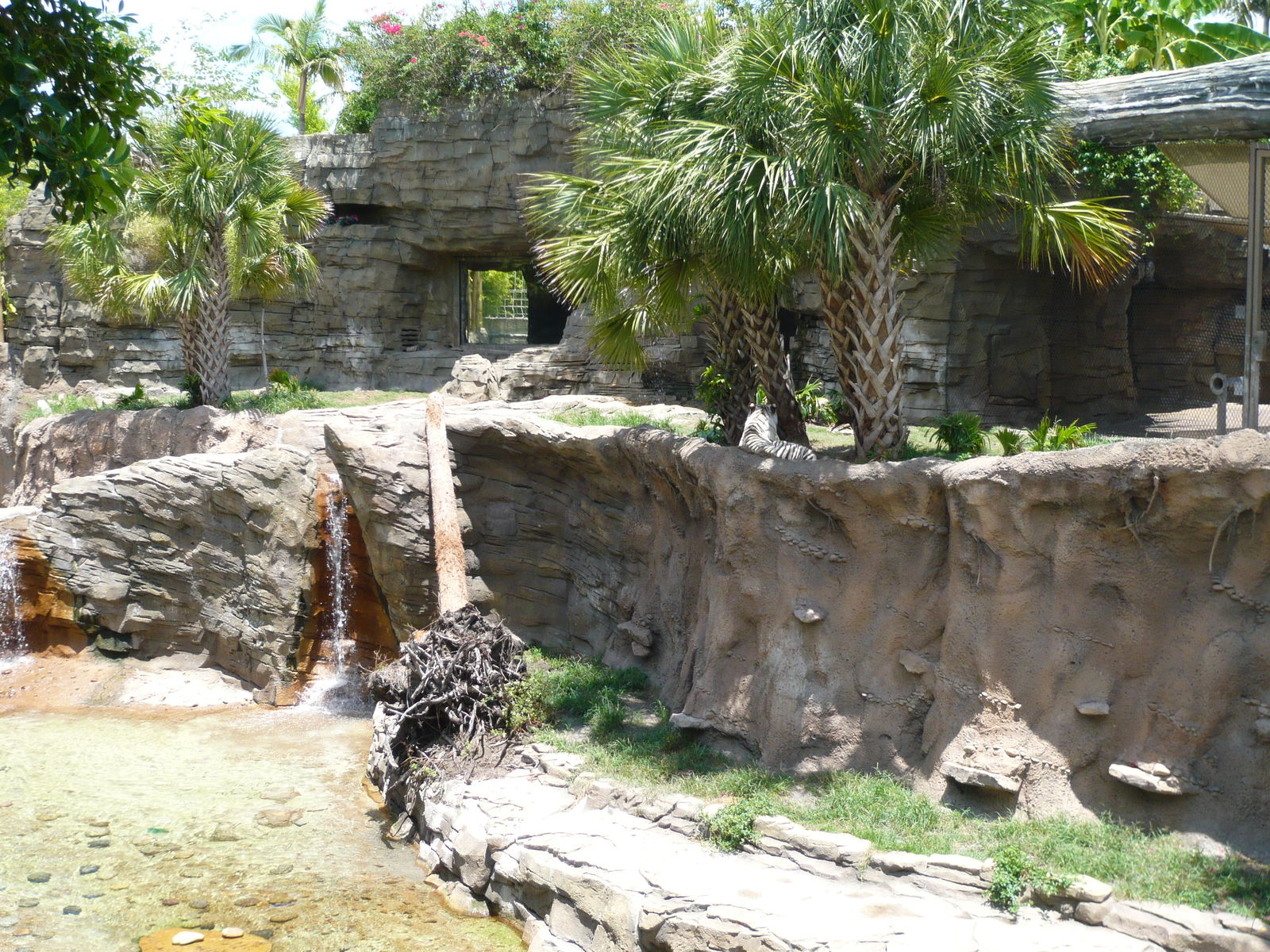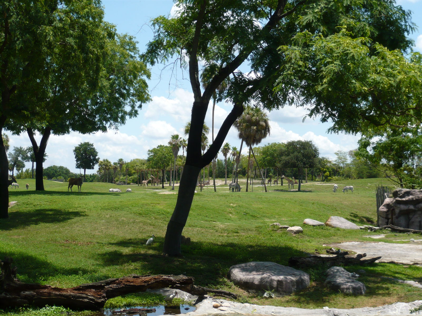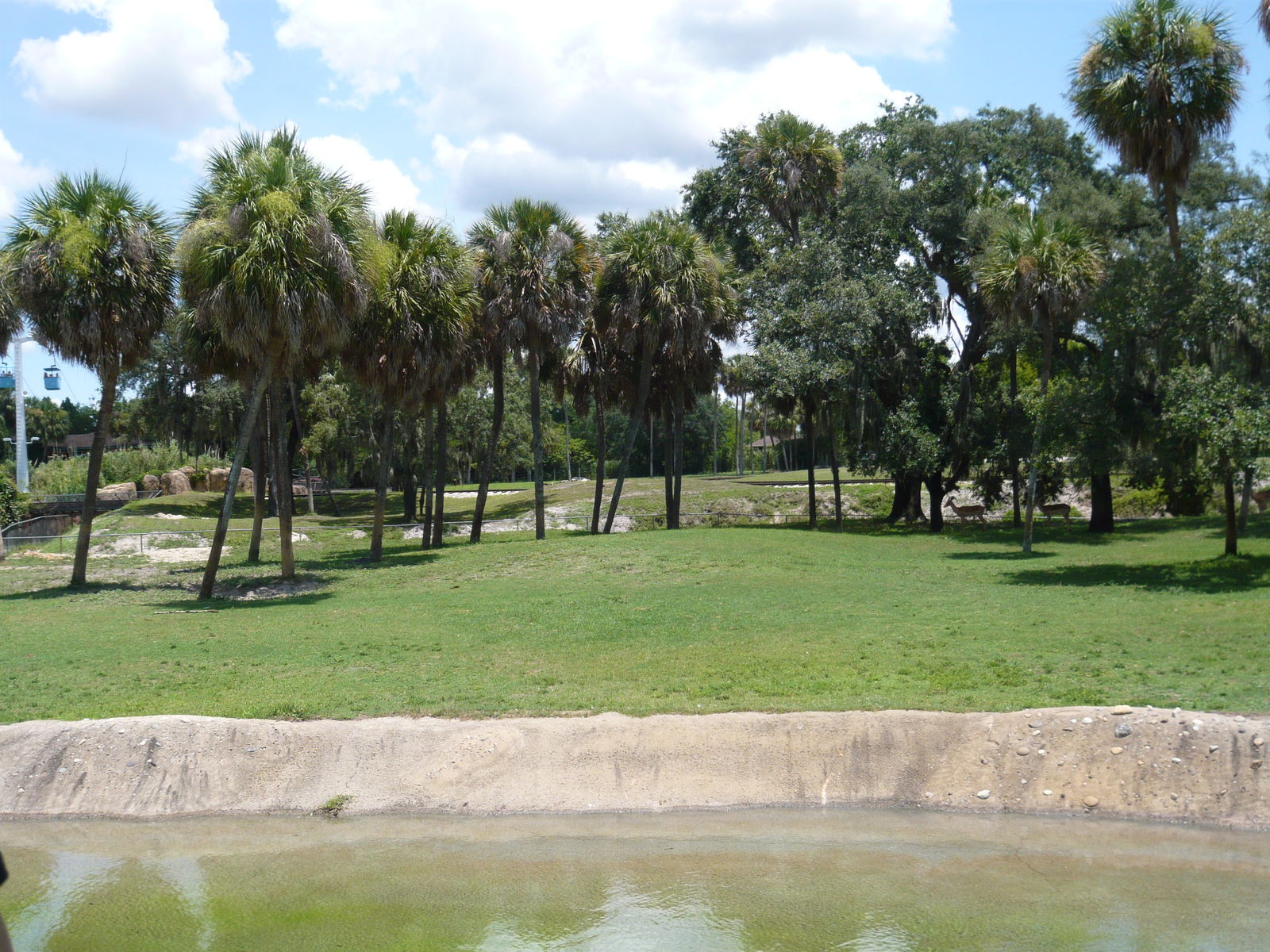 Auf dem Weg zum Startpunkt der Rhino Ralley kommt man an den Tiergehegen des Themenbereichs Edge of Africa vorbei. Stellenweise kann man von hier aus auch auf Teile der grossen Serengeti-Ebene in der Osthälfte des Parks blicken, die man per Seilbahn, Eisenbahn oder eben in den Safari-Landrovern von Rhino Ralley erkunden kann.