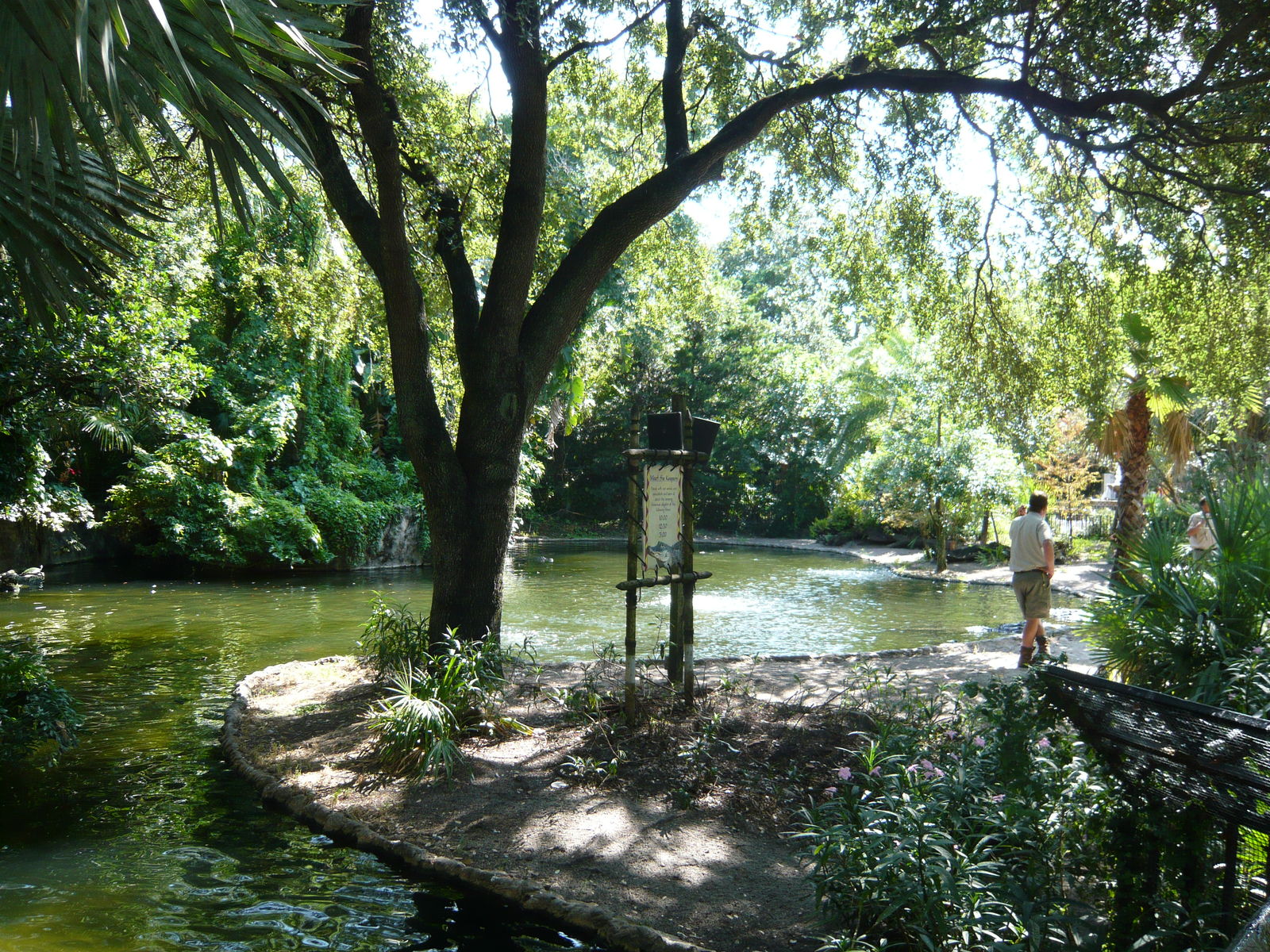 Danach haben wir noch die hier in der Nähe liegenden Tierhabitate angesehen. Im Marokko-Bereich gibt es ein grosszügiges Alligatorenbecken, wo wir grade zu einer Fütterung dazu gestossen sind.