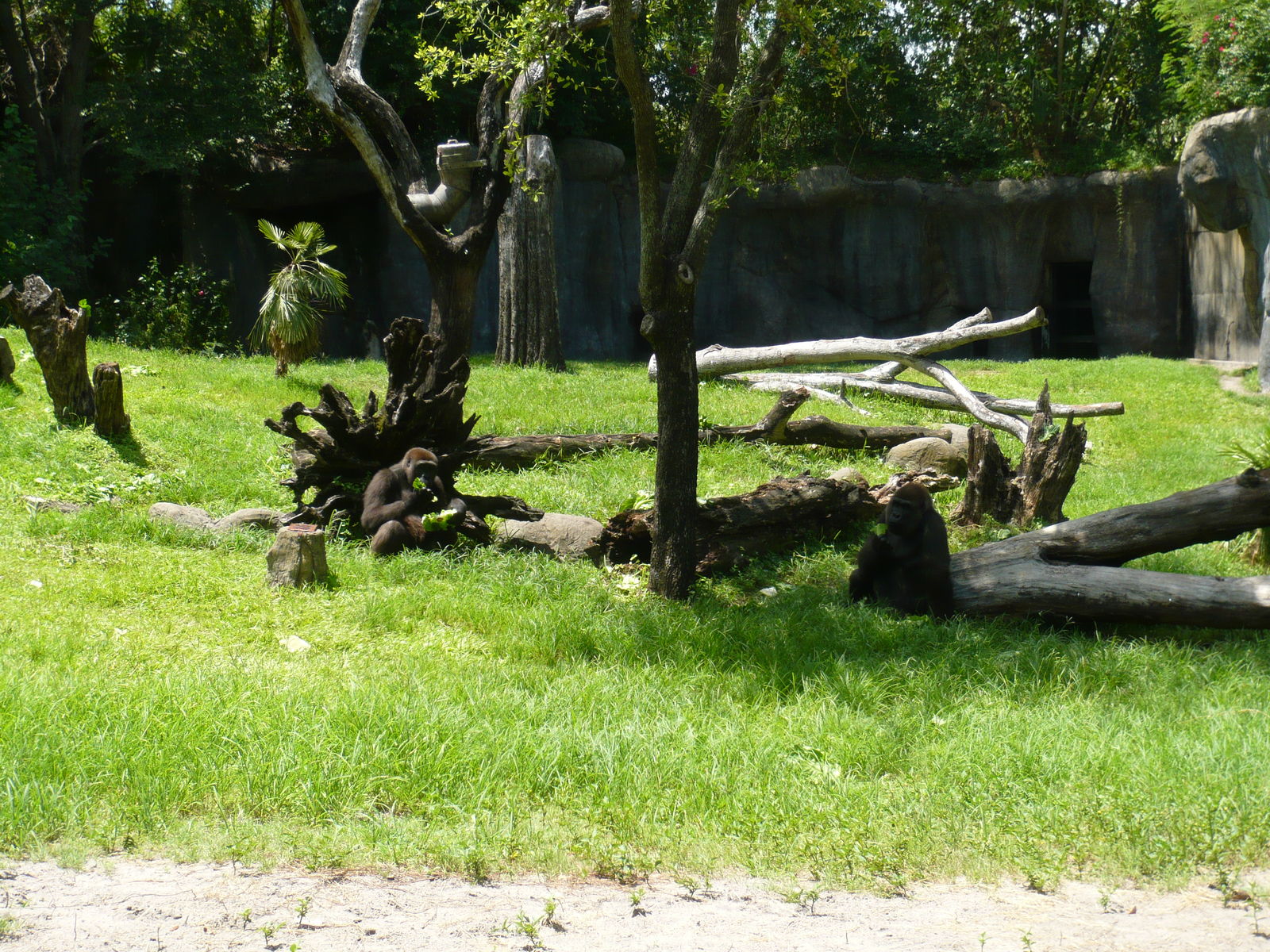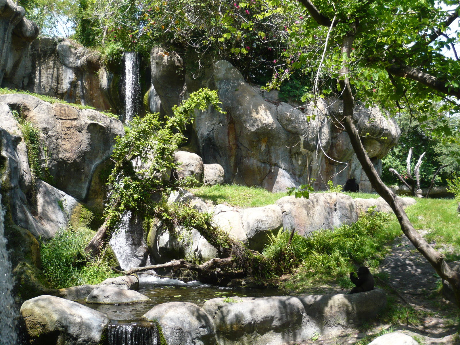 Und im weitläufigen Myombe Reserve sind Gorillas und Schimpansen zuhause. Wirklich eine ausgesprochen schön gestaltete Anlage mit Wasserfällen, kleinen Höhlen in den Felsmassiven und viel schattenspendender Vegetation. Hier sind wir ein gutes Stückchen verweilt, weil es so friedlich, ruhig und kühl war.
