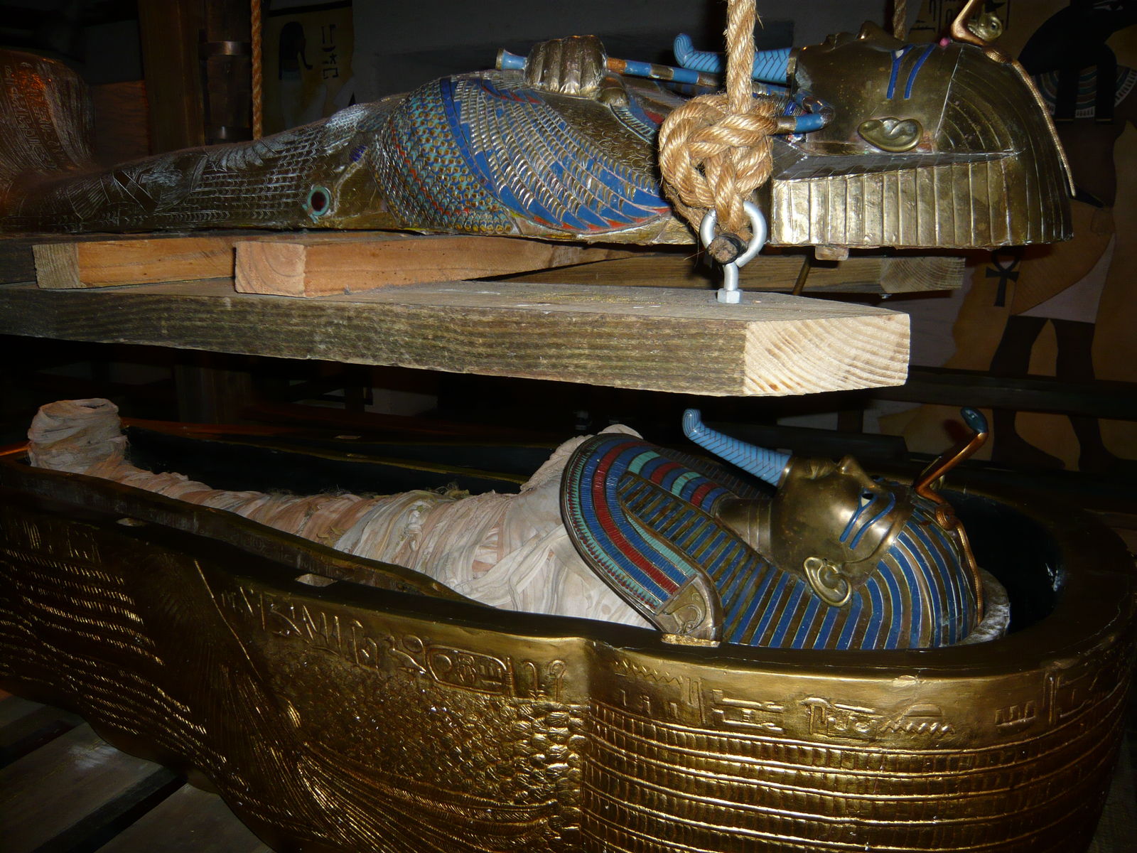 Neben Montu befindet sich eine Nachbildung einer ägyptischen Pharaonen-Grabstätte, mit allerlei Informationen und Requisiten zu den Expeditionen, auf denen sie entdeckt wurde.