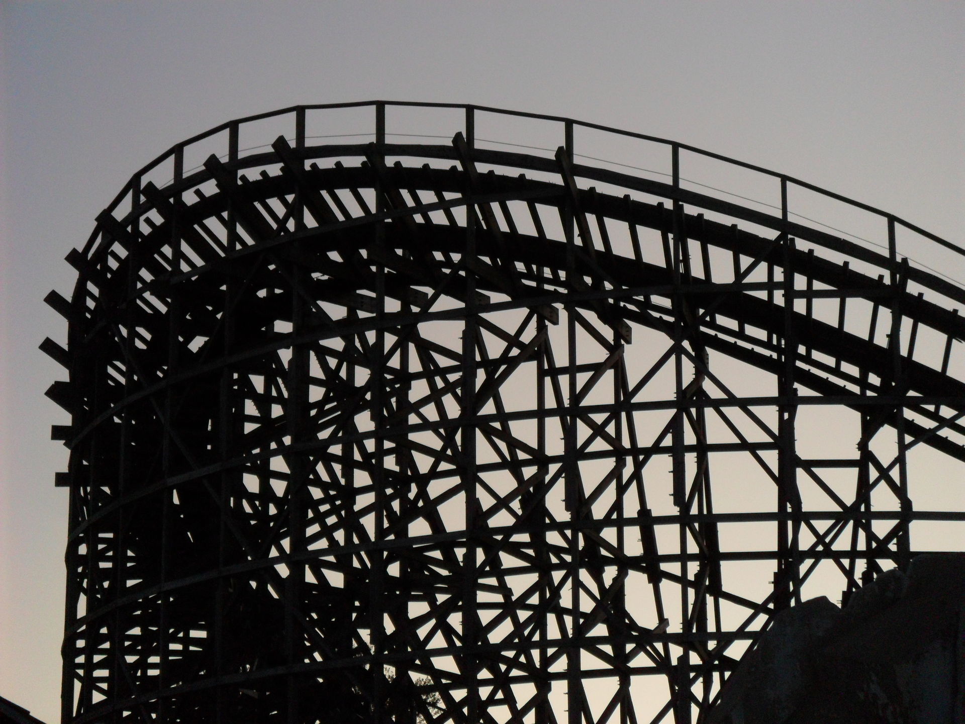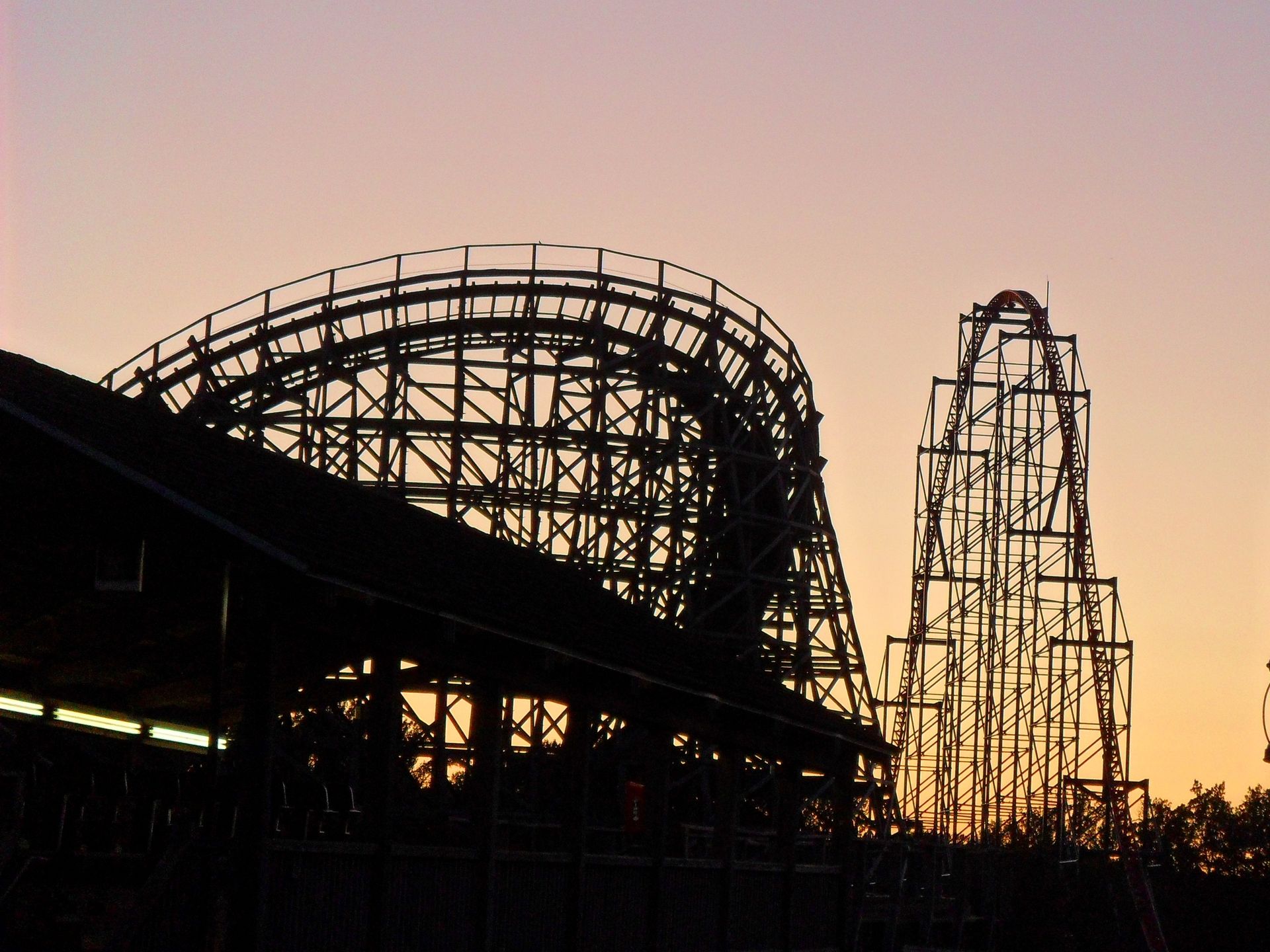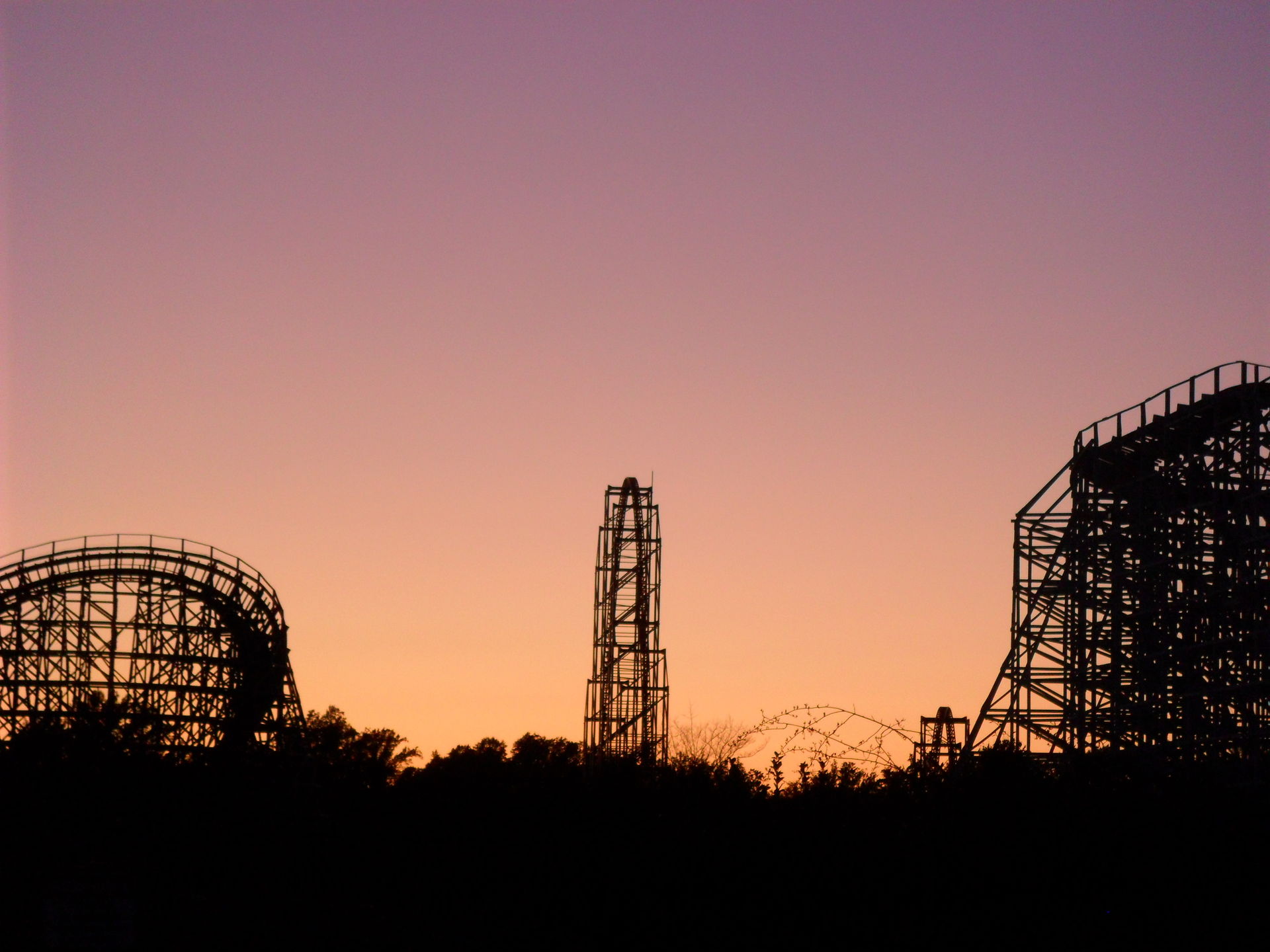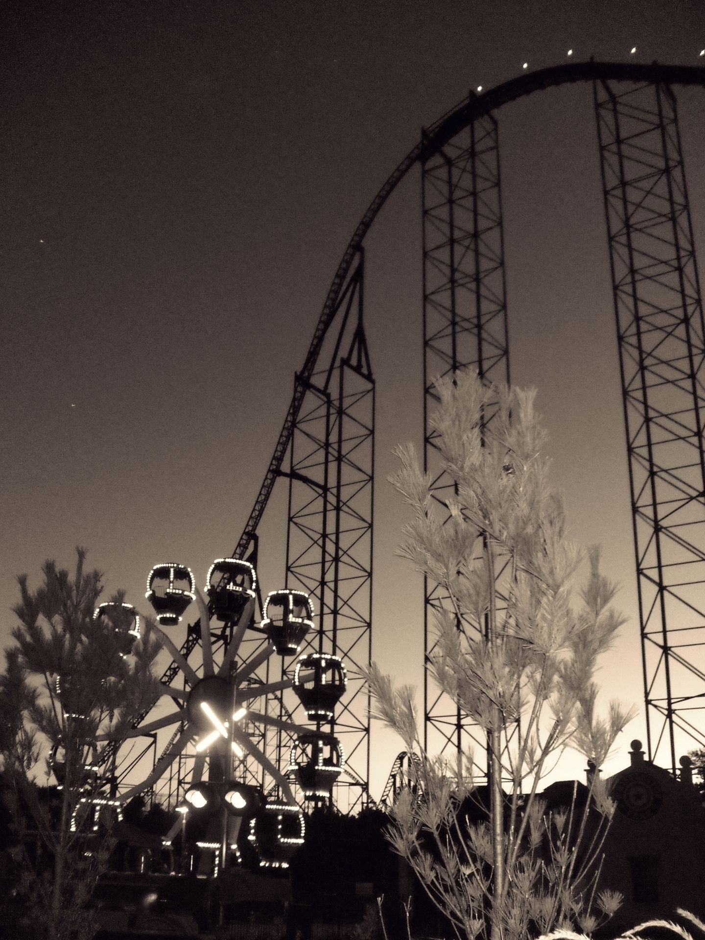 Langsam wurde es dunkel und es ergaben sich schöne Fotoaufnahmen im Sonnenuntergang. Vor Allem von Superman aus hatte man einen wunderschönen Blick auf den Feuerroten Sonnenuntergang am Horizont. Leider hatte ich bei dieser Fahrt meine Kamera nicht griffbereit, aber das Foto wäre wahrscheinlich eh verschwommen. Sobald es dunkel wurde, wurde es auch etwas voller, sodass man bei Superman nun ungefähr 20 Minuten warten musste. Man hätte wahrscheinlich viel weniger gewartet, wenn sie die Leute ein bisschen schneller abgefertigt hätten. Aber aufgrund von unnötigen Durchsagen, privaten Gesprächen unter den Mitarbeitern… hat sich das ganze etwas verzögert. Aber was sind schon 20 Minuten