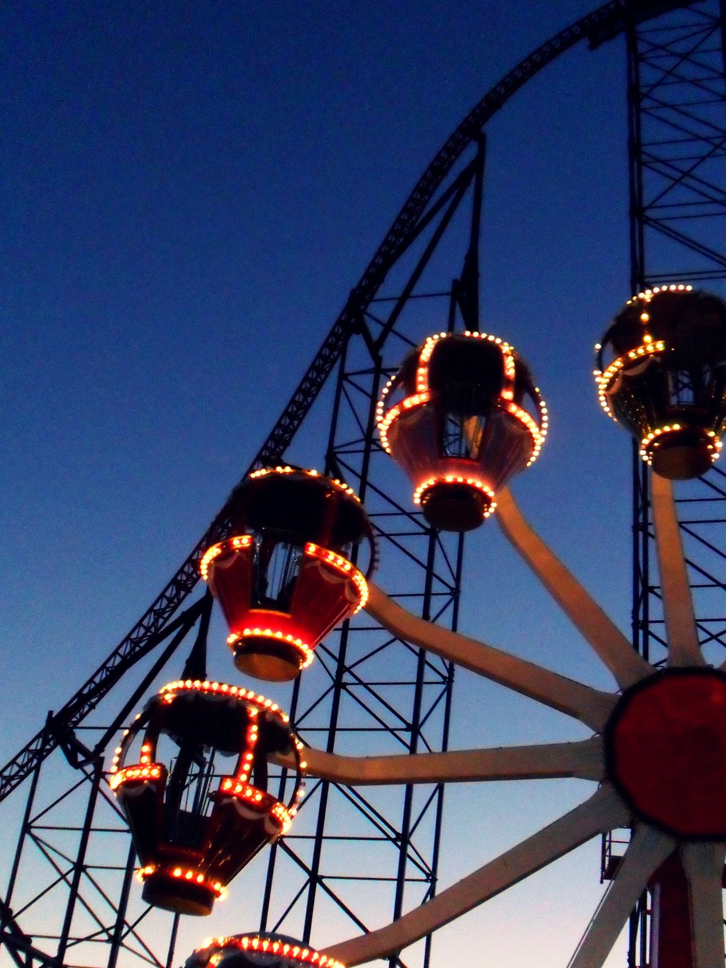 Leider waren wir nicht drin. Dann ging es also weiter zur Holzachterbahn. Auch hier mussten wir mal wieder unsere Rucksäcke in ein Minischließfach quetschen und dafür einen Dollar bezahlen. Wartezeit gab es keine. Die Fahrt war wieder schön rasant und lustig. Danach haben wir die Rucksäcke gleich im Schließfach gelassen und sind rüber zum Tower of doom. Nicht gerade spektakulär, aber besser als nichts. Später wurde dann das Karussell erobert, wo wir auf Tiger, Pferd und Kamel geritten sind.