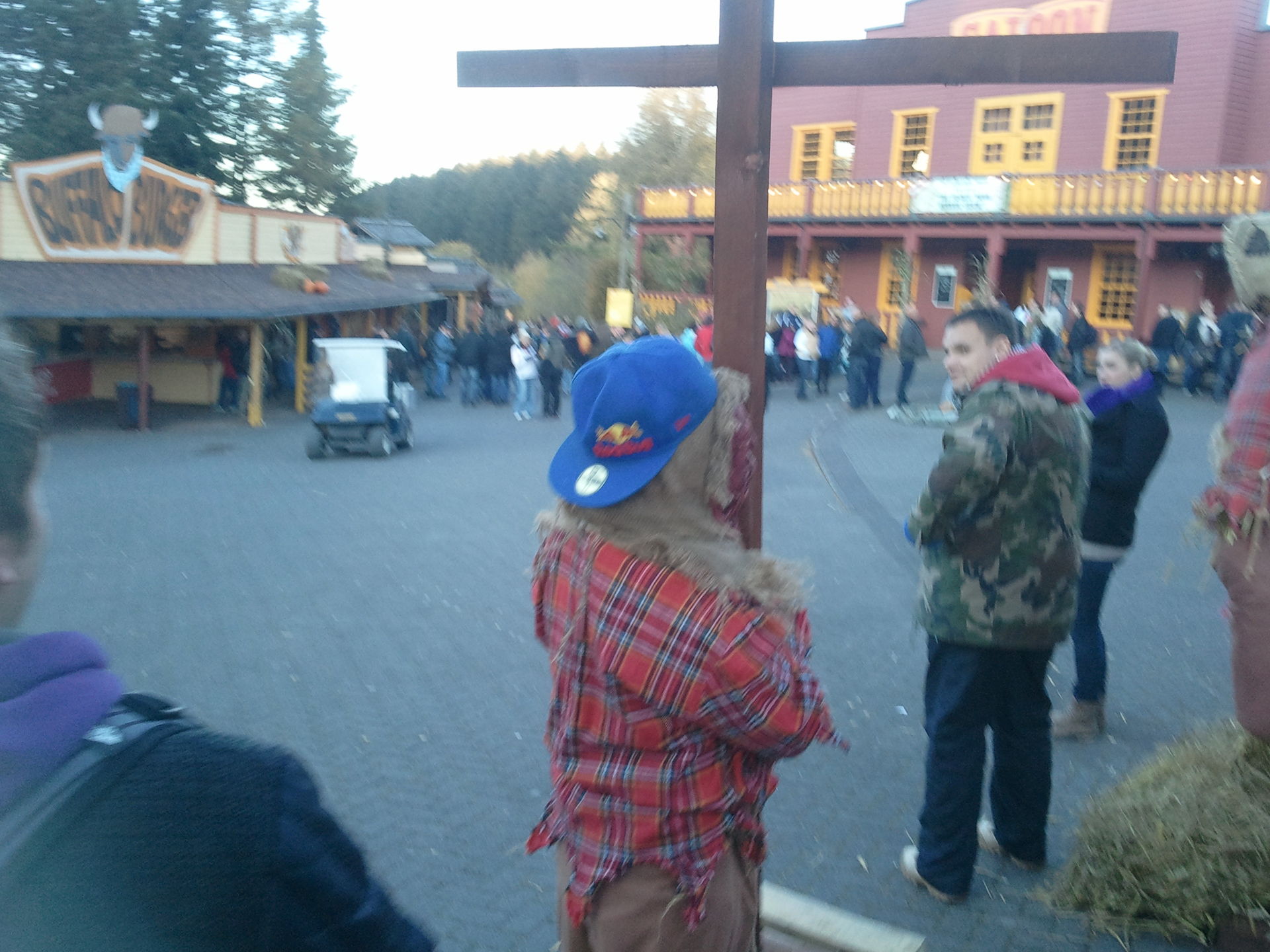 In so einer Maze war ich noch nie. Man wird erst mal mit einem "Bus" in den Wald gefahren in der Zeit läuft ein kleiner netter Film der die Geschichte von dem Wald erzählt wird. Wir waren mit im Wald alleine ausgesetzt.Es war Dunkel nur ein wenig doof gemacht das man immer über diese Doofen Wurzeln gestolpert ist. Es war schon gruselig aber nicht gruselig genug wie ich finde. Ich weiß nicht ob es nur so wenig Monster im Wald waren oder es daran lag das wir im Vorletzten Bus waren und es schon nach 22uhr war.