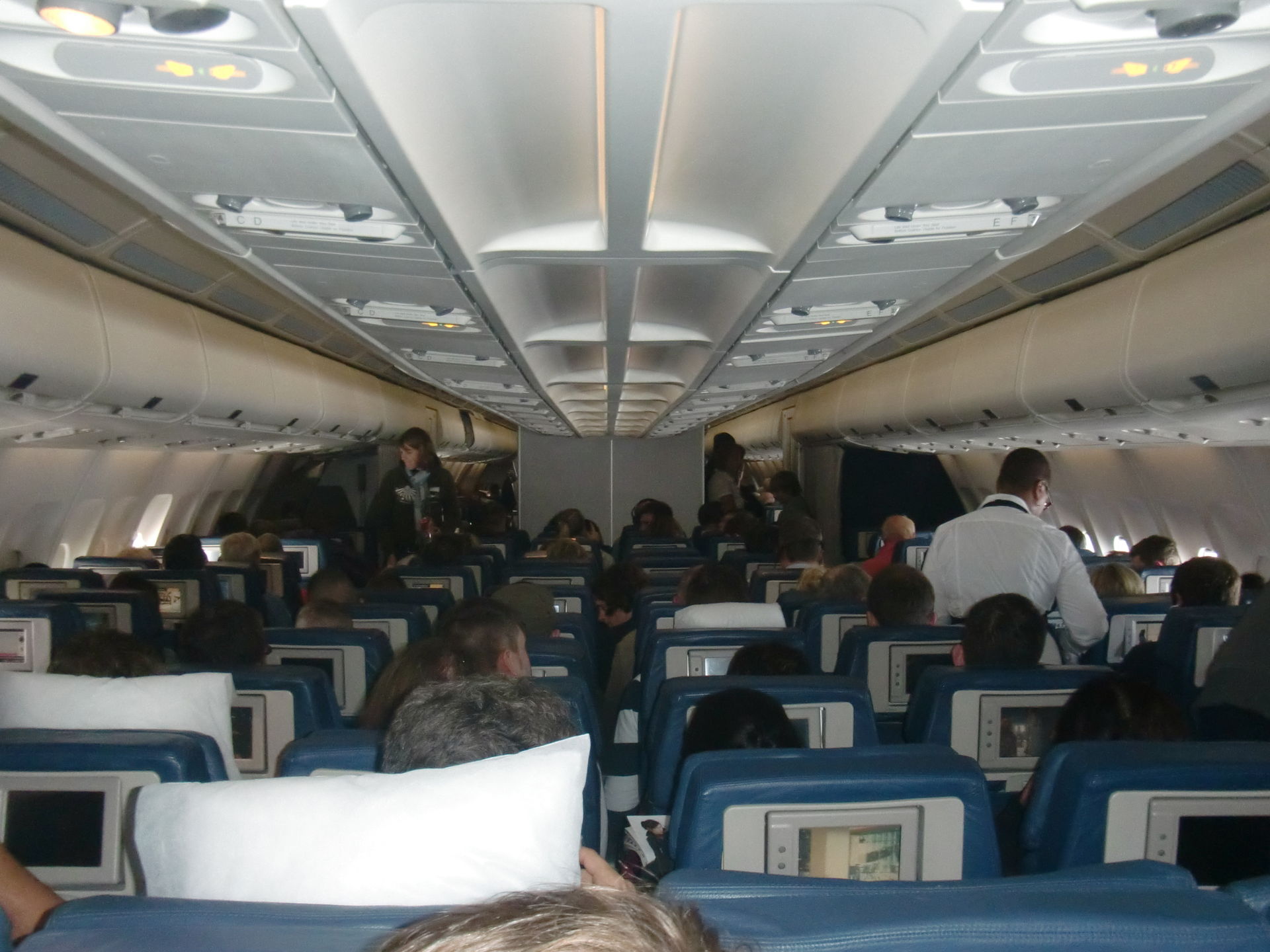 In unserem Fall mit einem A330-300 der US Airways, gefühlt in einer Sardinenbüchse.