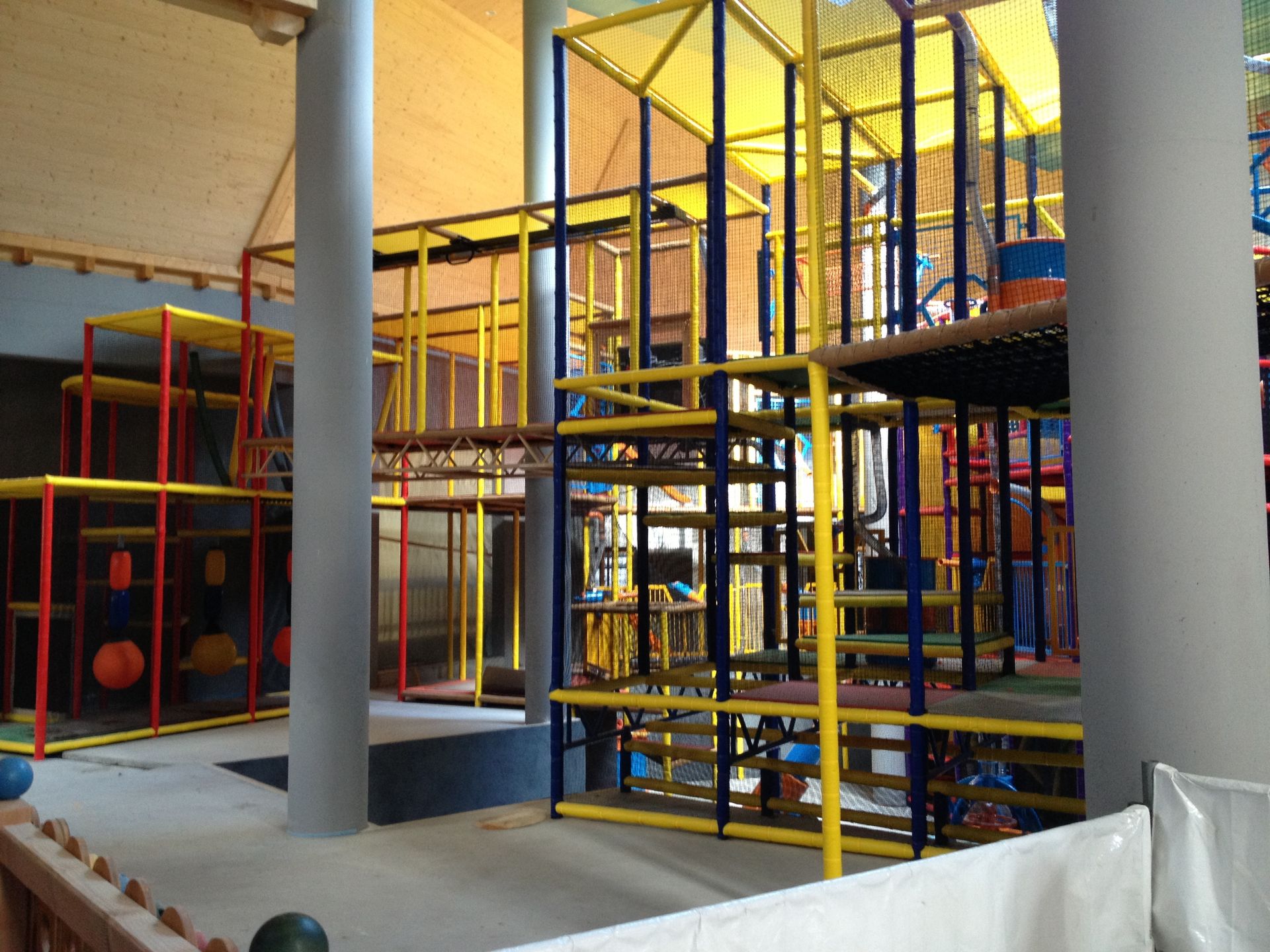 Hunderte von bunten Bällen wirbeln umher. Kinder schleudern sie mit Kanonen durch die Luft, lassen sie durch Rohre sausen und über Luftdüsen schweben. Auf verschlungenen Wegen klettern Mädchen und Jungen über drei Ebenen nach oben, balancieren über Hängebrücken, hangeln sich durch Netze und gleiten auf Rutschen wieder hinunter auf den Boden – einem riesigen Mensch-ärgere-Dich-nicht-Spiel.