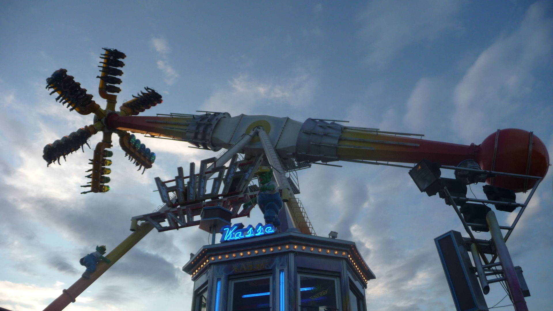 Inversion für mich nichts toppt), denn das Dingen schaukelt einen Munter in alle Richtungen, mal ist man oben Gerade, mal nur ein normaler Überschlag, mal hauts einen (aber nicht zu stark) vor und zurück - zu kurze Fahrt für 4 ¤, doch das soll ja keine Neuheit sein.