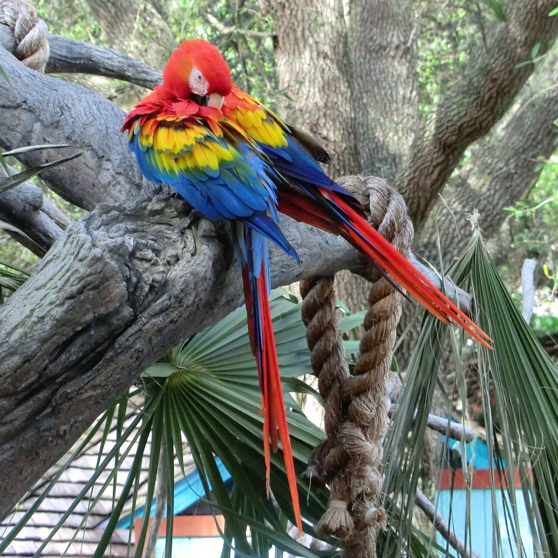 Die Sippe der roten Sittiche sitzt satt im Strauch