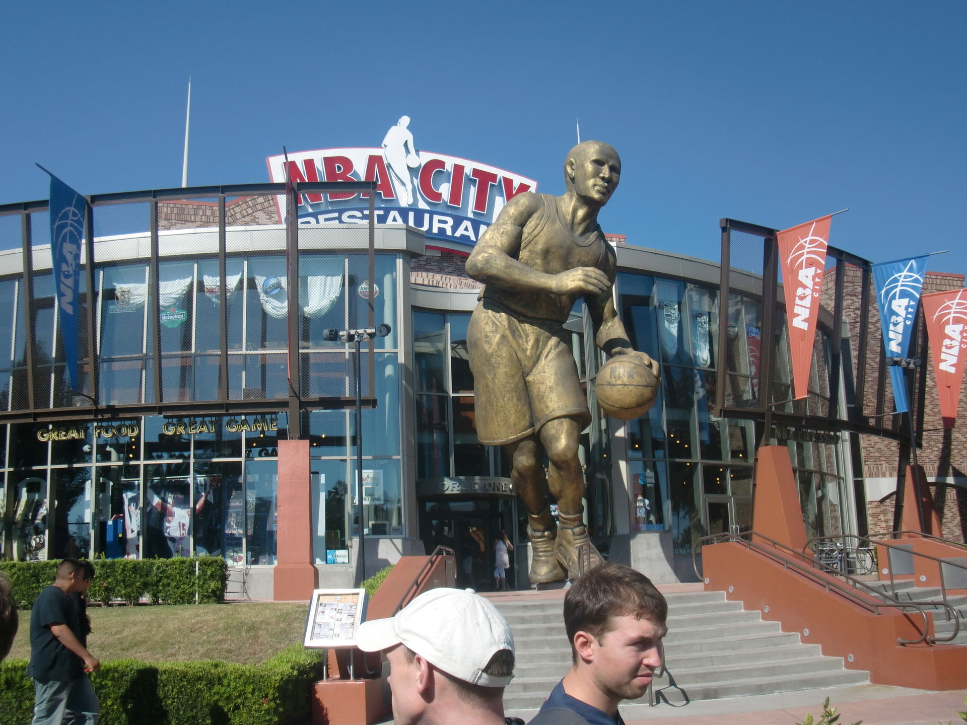 Nur das schnieke Sportrestaurant ist gar nicht so schnieke wie man denkt. Das ist im ein Hardrock-Cafe, nur dass dort anstatt einer Jimi Hendrix-Klampfe ein paar olle Schuhgröße 54-Treter von Shaq O´Neal rumstehen. Ich wäre aber trotzdem hingegangen, immerhin ist es das einzige was derzeit an NBA-Sport in den USA zu sehen! S