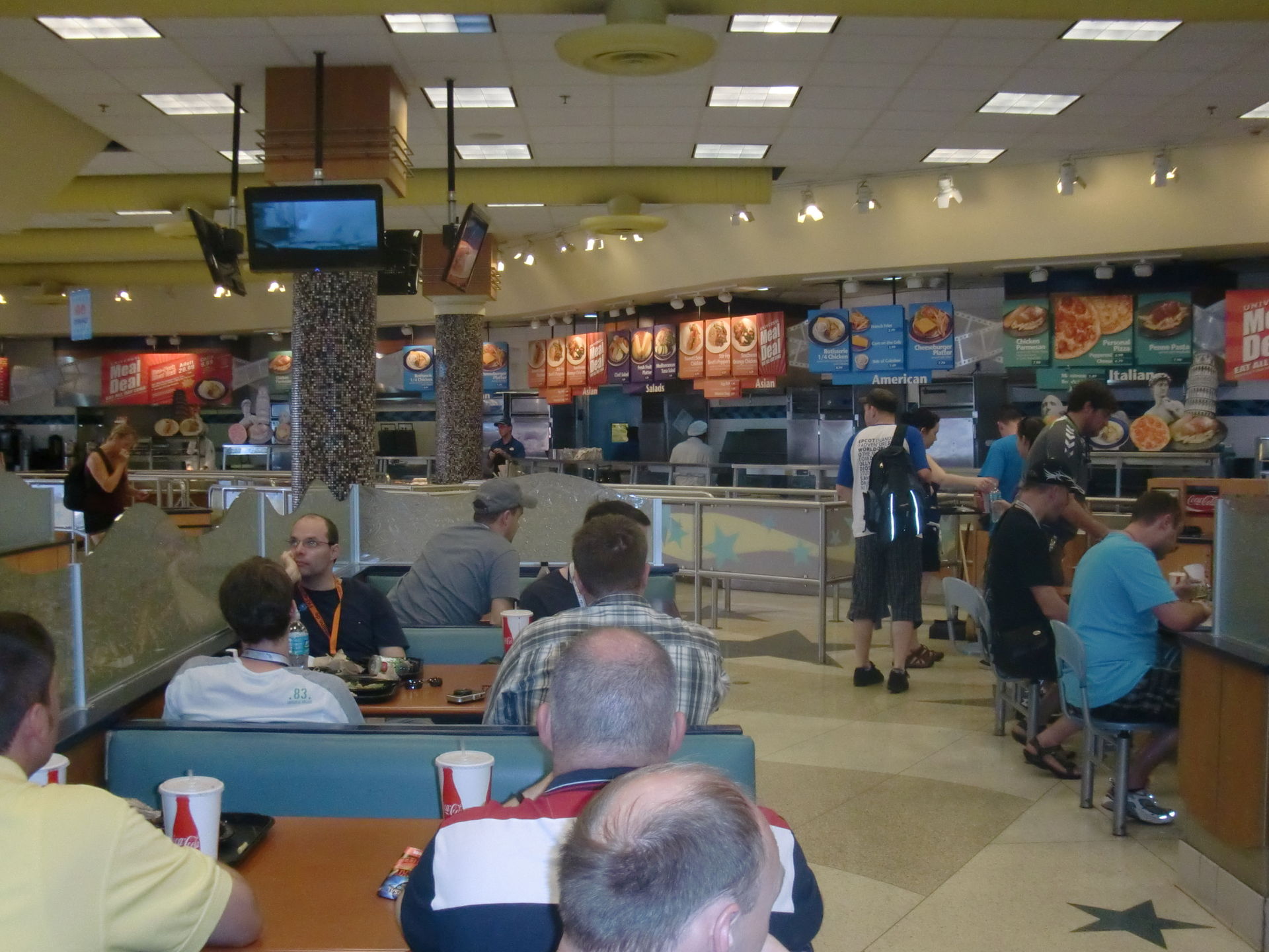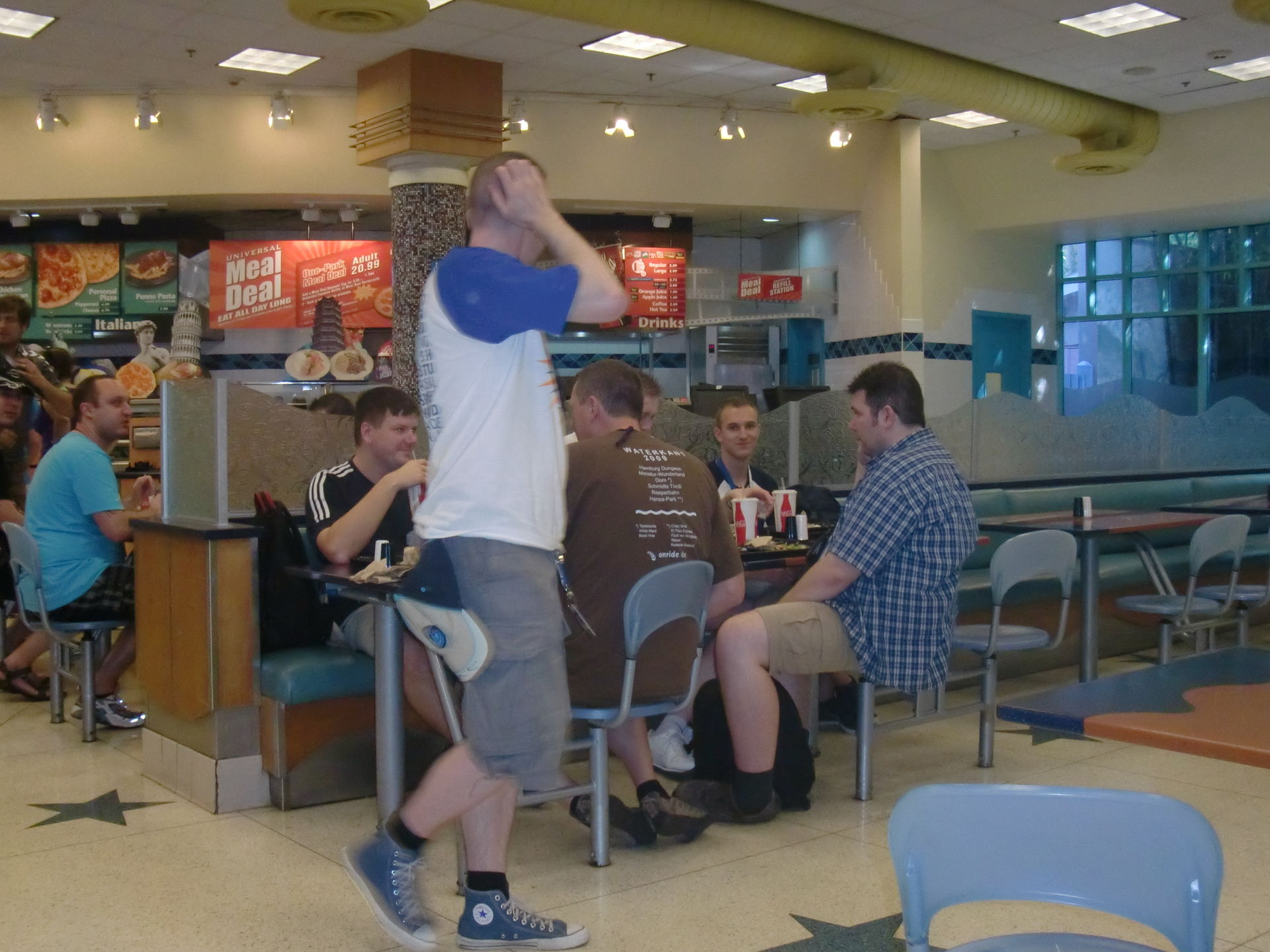 und sich zu diesem Zweck an einer Fastfood- Fütterungsstation einzufinden, die die Spezialitäten verschiedener Länder anbietet. Also Pizza, Burger und Nudeln.