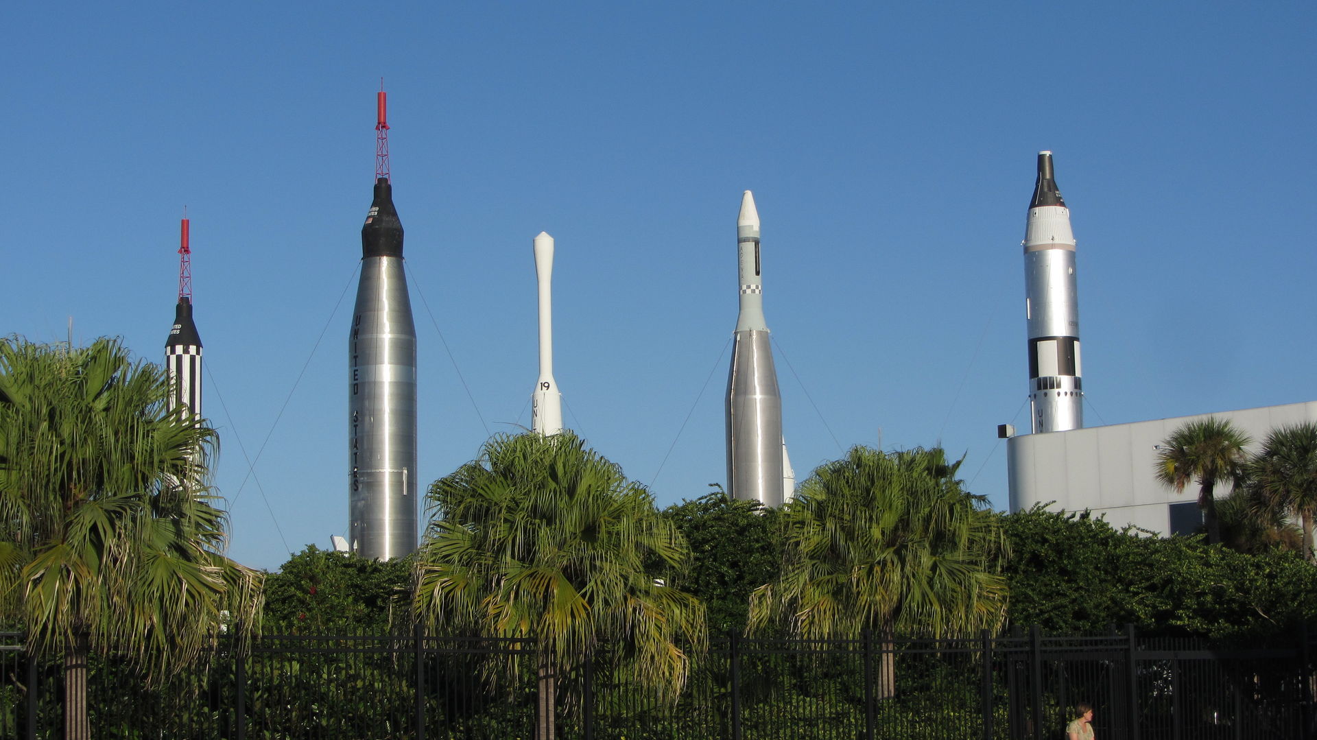Nach der Sicherheitskontrolle am Eingang (Gepäckkontrolle und Metalldetektoren) ging es erst einmal zum Rocket Garden: Raketen gucken..
