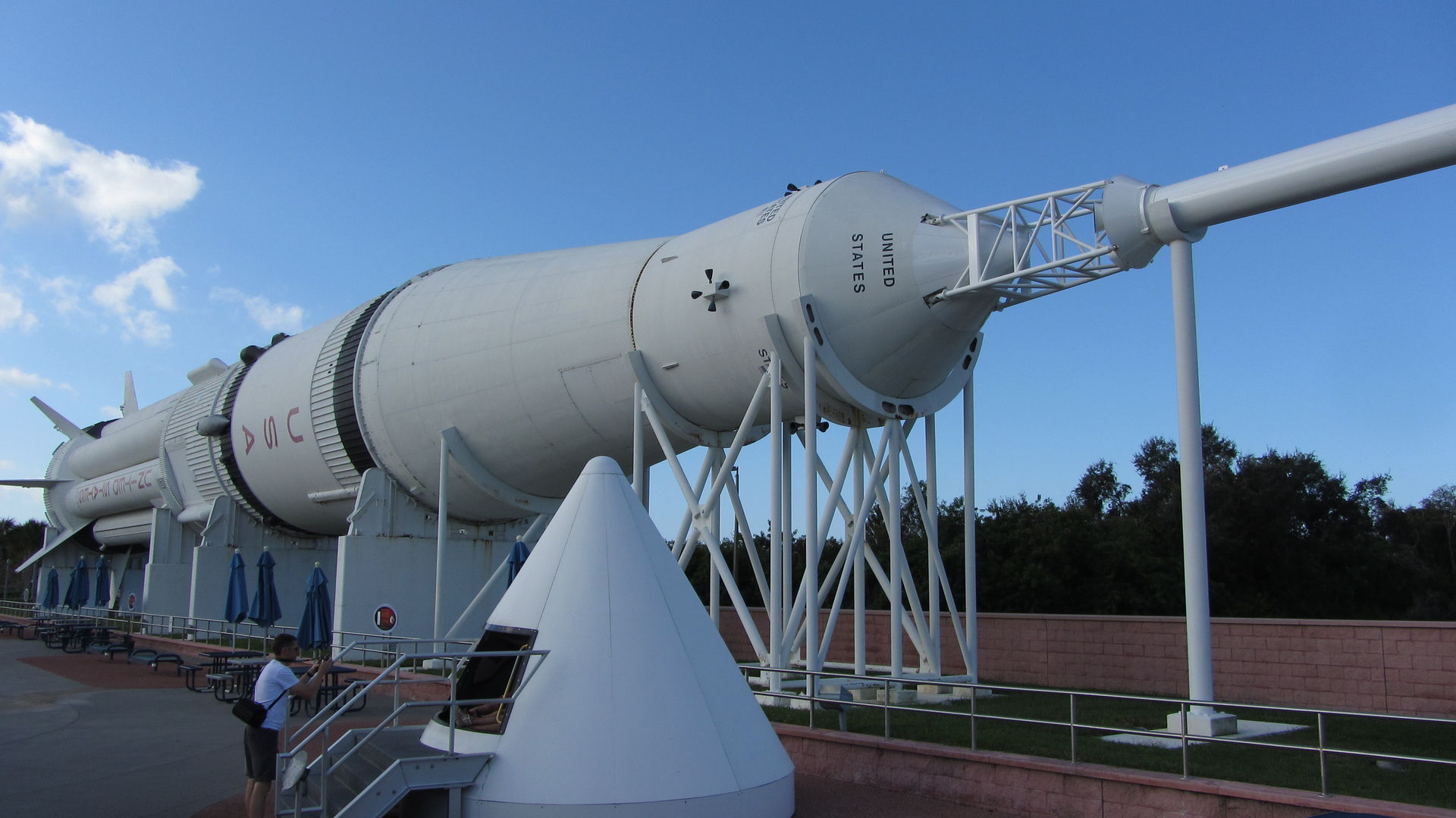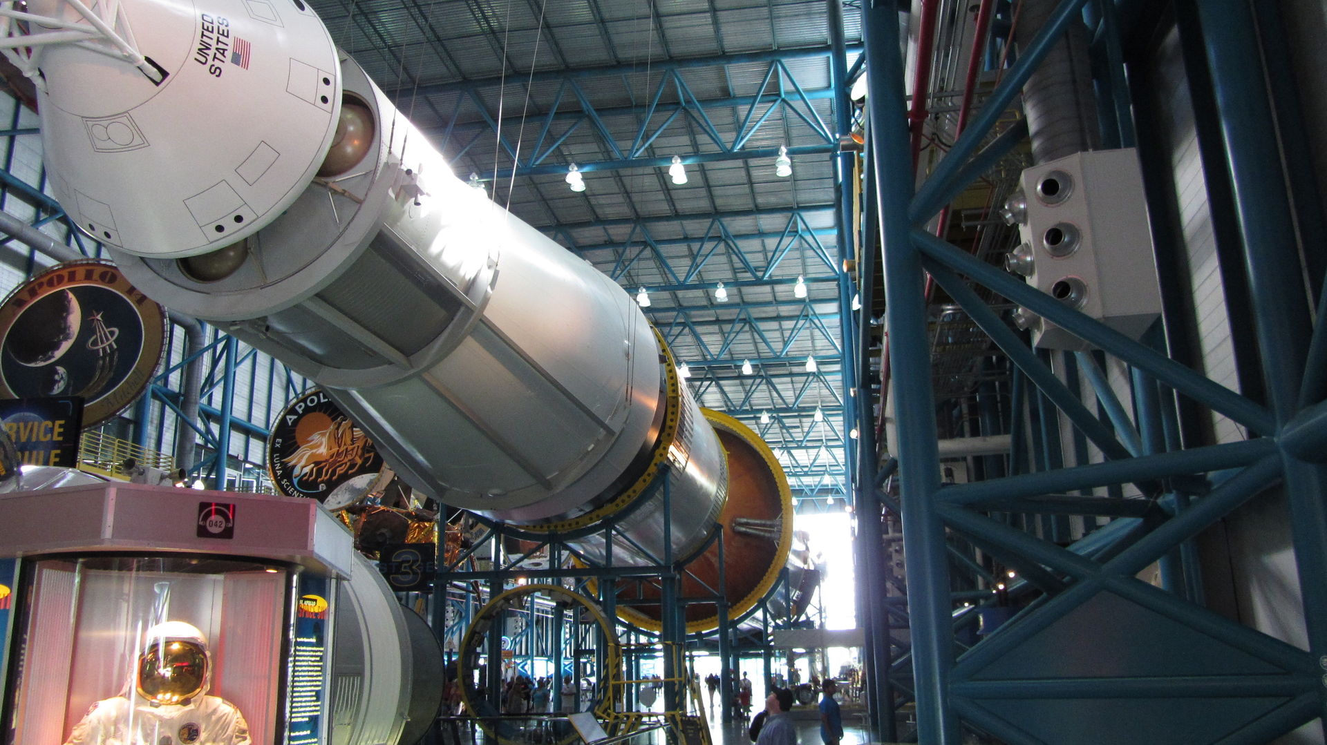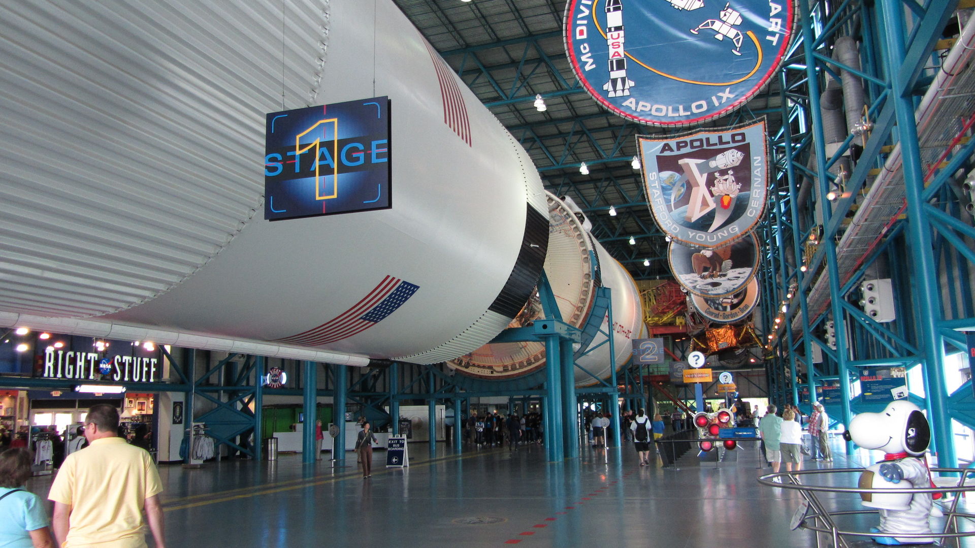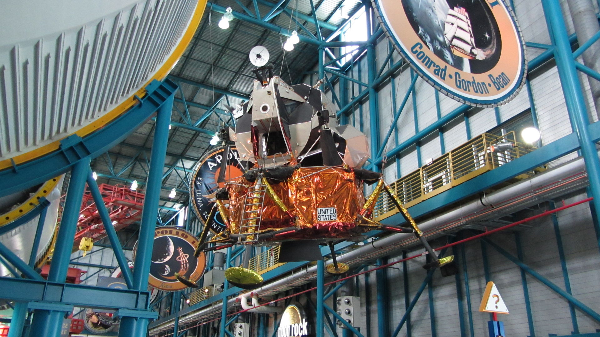 Die Tour endete dann in einem anderen Besucherkomplex, den man, so weit ich das mitbekommen habe, auch nur erreicht, wenn man eine der Touren gebucht hat. Hier gab es dann einige interessante Dinge zu sehen wie zum Beispiel die letzte Apollo Rakete in voller größe über den Köpfen der Besucher. Ein original Mond Landemodul, dass nie auf dem Mond gelandet ist und die Landekapsel einer Mondmission, mit der die Astronauten wieder auf der Erde gelandet sind. Zudem konnte man auch mal ein Stück Mond anfassen und sich einen Film anschauen. Der Eintritt in diesen Besucherkomplex erfolgt durch eine kleine Show, in der die Geschichte der Mondmissionen erzählt wird. Sehr schön gemacht meiner Meinung nach.