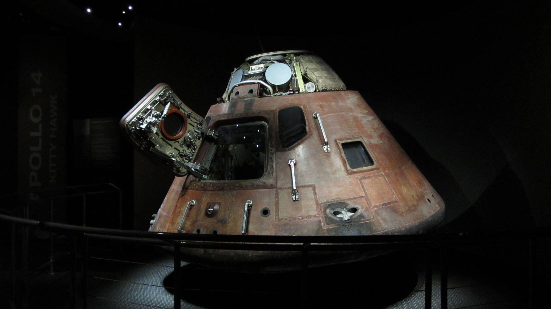 Das ist die Kitty Hawk, die Kommandokapsel von Apollo 14. Flugzeit war 9 Tage, 0 Stunden und 1:58 Minuten.
