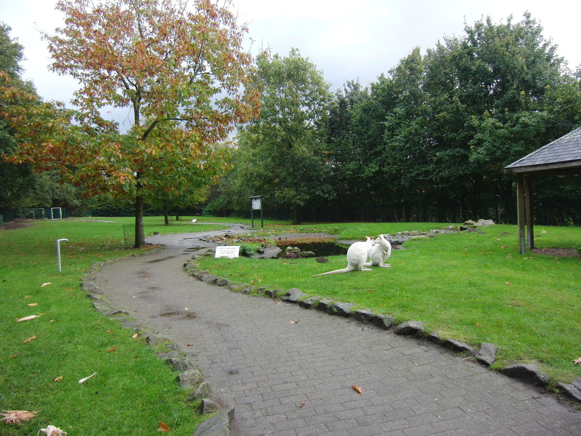 Hier ein weiteres Freigehege mit weissen Kängurus.