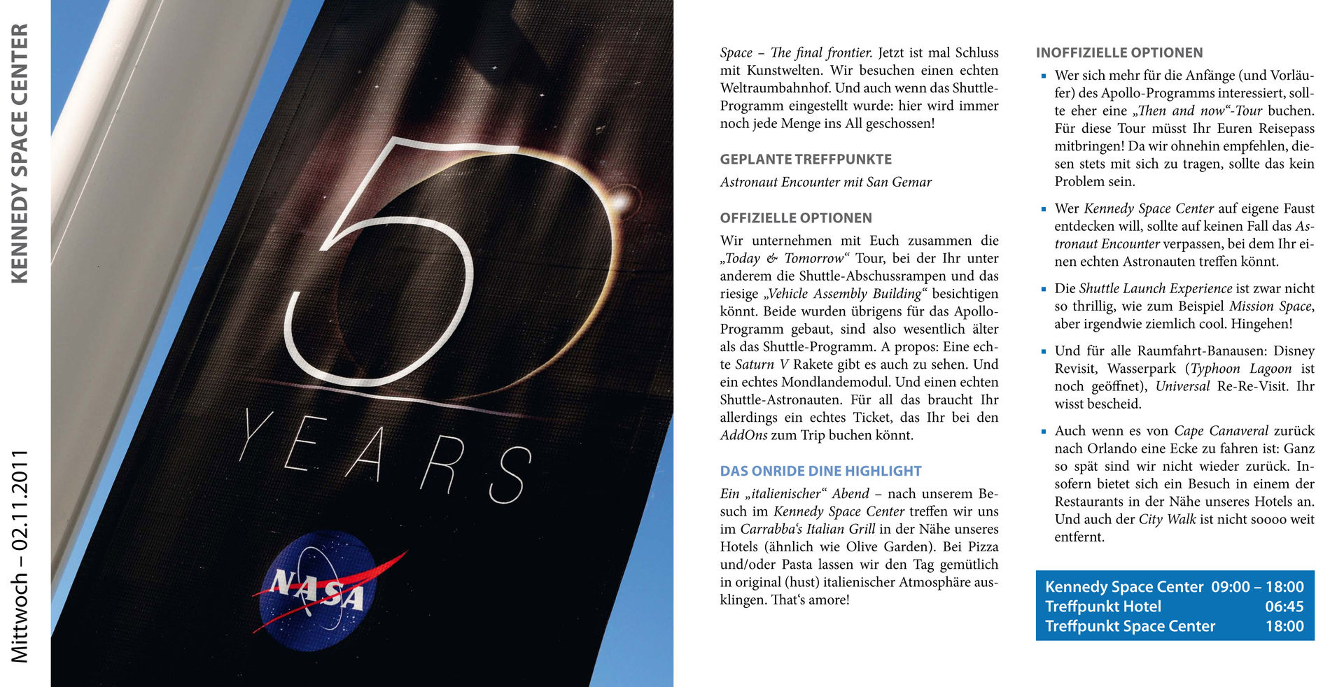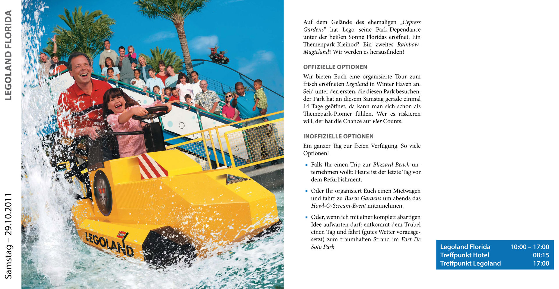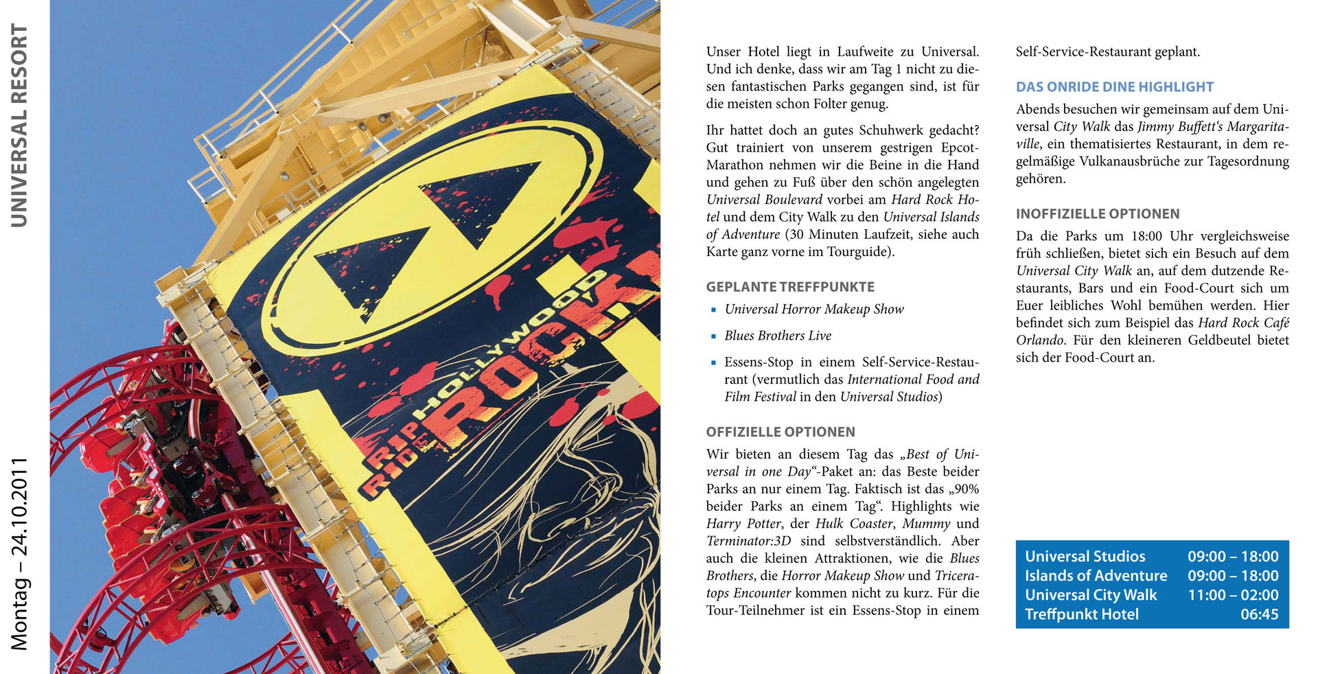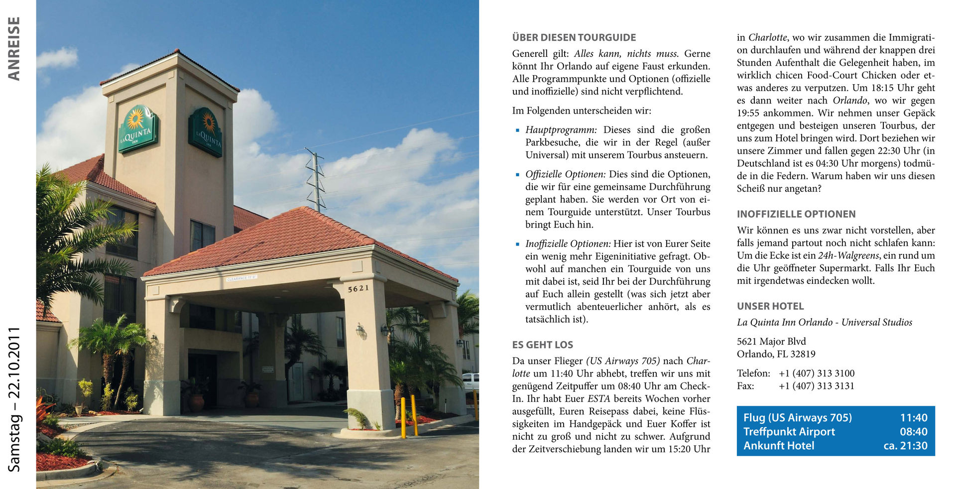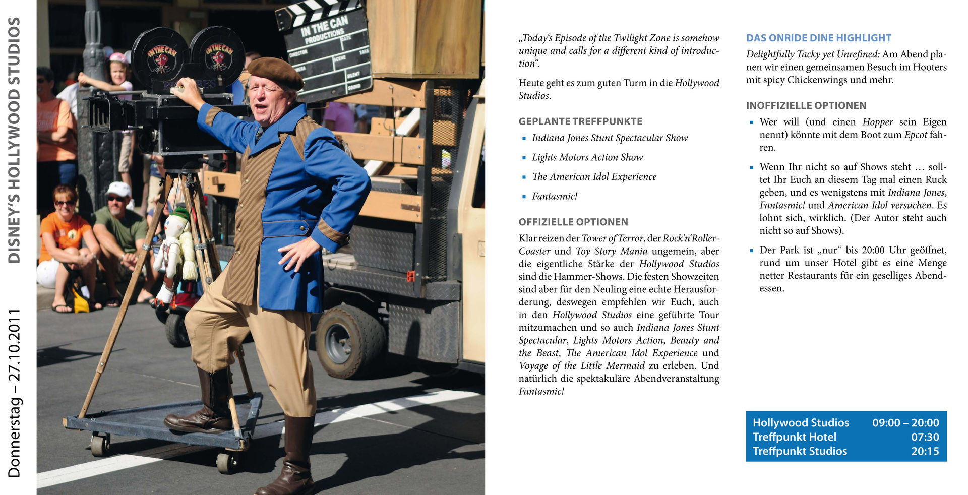 Die Hinweise zur Ablaufplanung und die Broschüre könnten auch gut im Orlando Guide ein zuhause finden, auch wenn man für eine private Tour nicht so generalstabsmäßig planen muss steckt da viel wissenswertes drin auf das es zu achten lohnt.