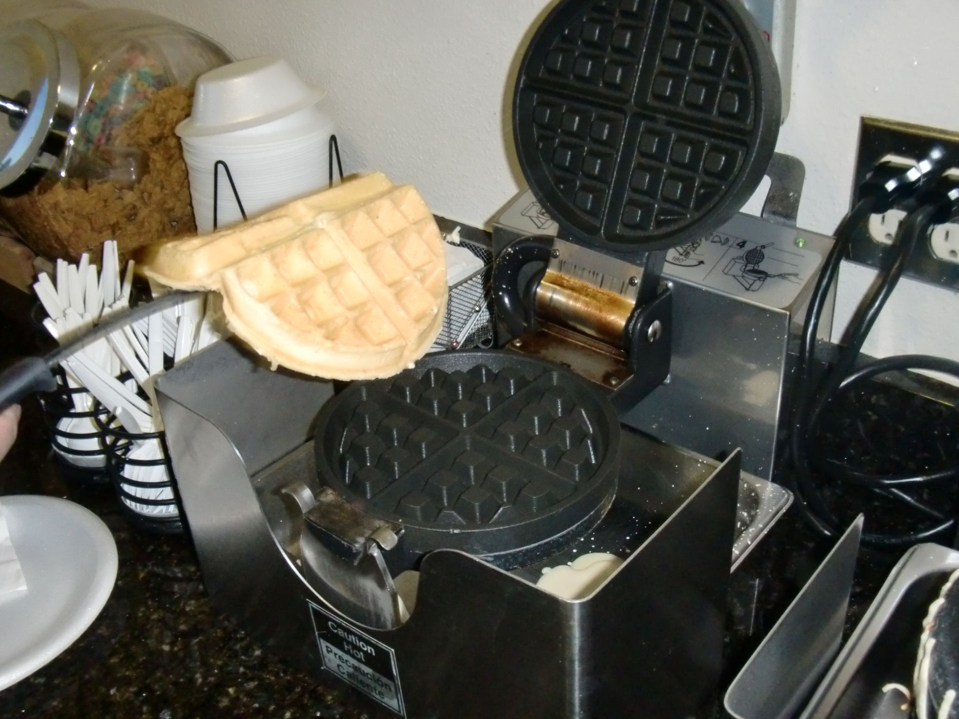 Vor die Abfahrt hat das Universum aber das Frühstück gesetzt. Für mich heute zum letzten mal während der Tour, nach der Waffel deckte ich mich künftig im Walgreens mit Frühstück ein.