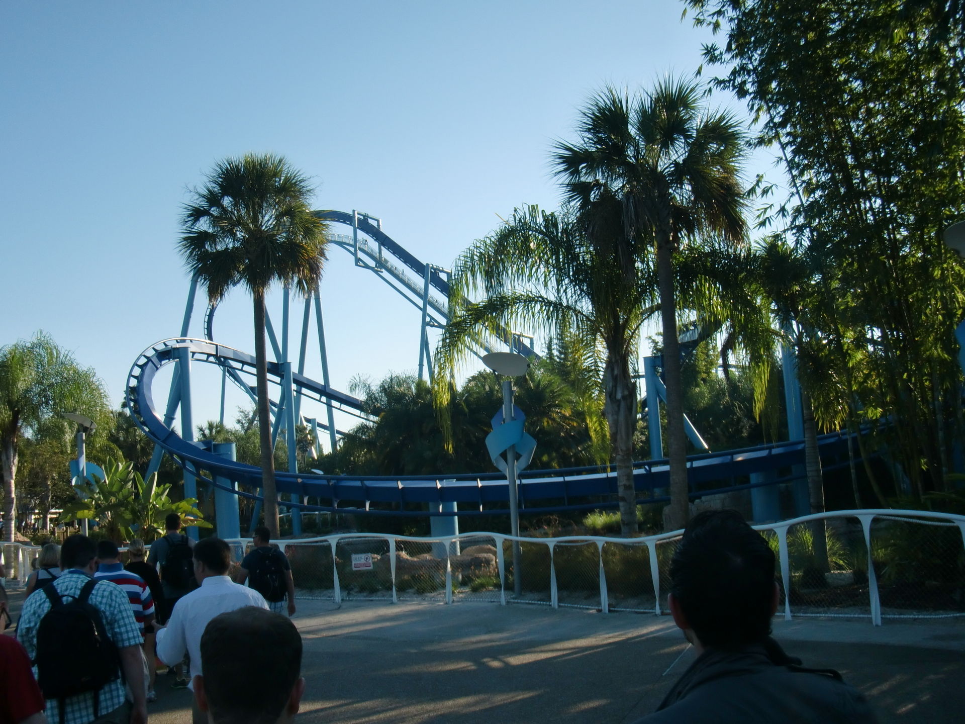 seaworld hatte uns zu einer kleinen ERT auf manta eingeladen und wir hatten so eine Seite der Doppelladestation für uns. Also erstmal fahren und sich vom Bretzelloop das Licht dimmen lassen. Manta ist eine geniale Bahn, die sogar jemandem mit meinem annähernd Frachtpflichtigem Übergewicht dermassen viel Platz im Bügel lässt, dass ich gefühlt noch jemanden mit in den Sitz bitten könnte. Wohl ganz auf amerikanische Verhältnisse abgestimmt?