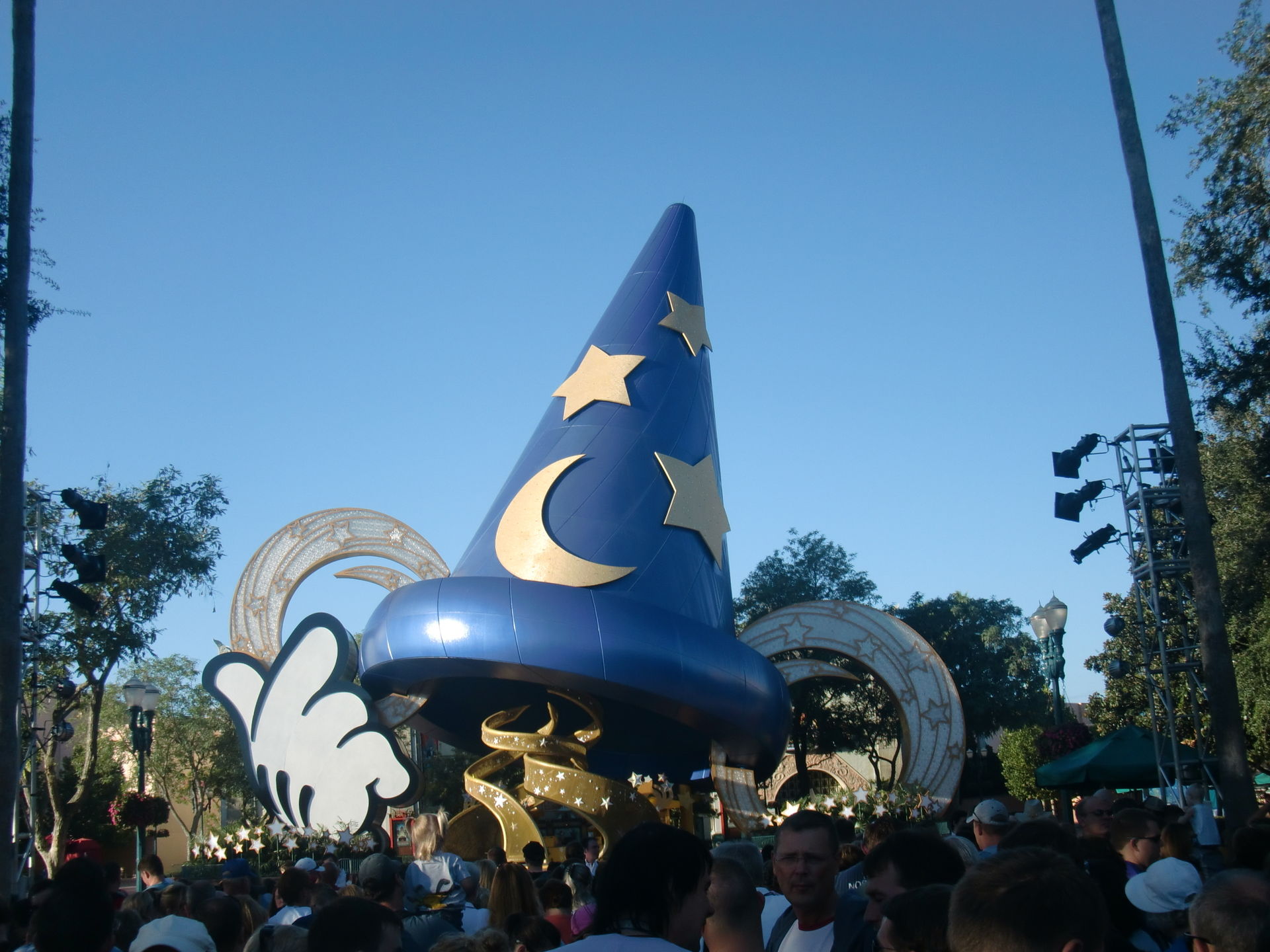 Mickeys Zauberhut, Wahrzeichen des Parks und für eine Weile Toms Nemesis, der IMHO Stunden damit verbrachte, ein nächtliches Foto des Huts ohne störende Personen zu erschaffen.