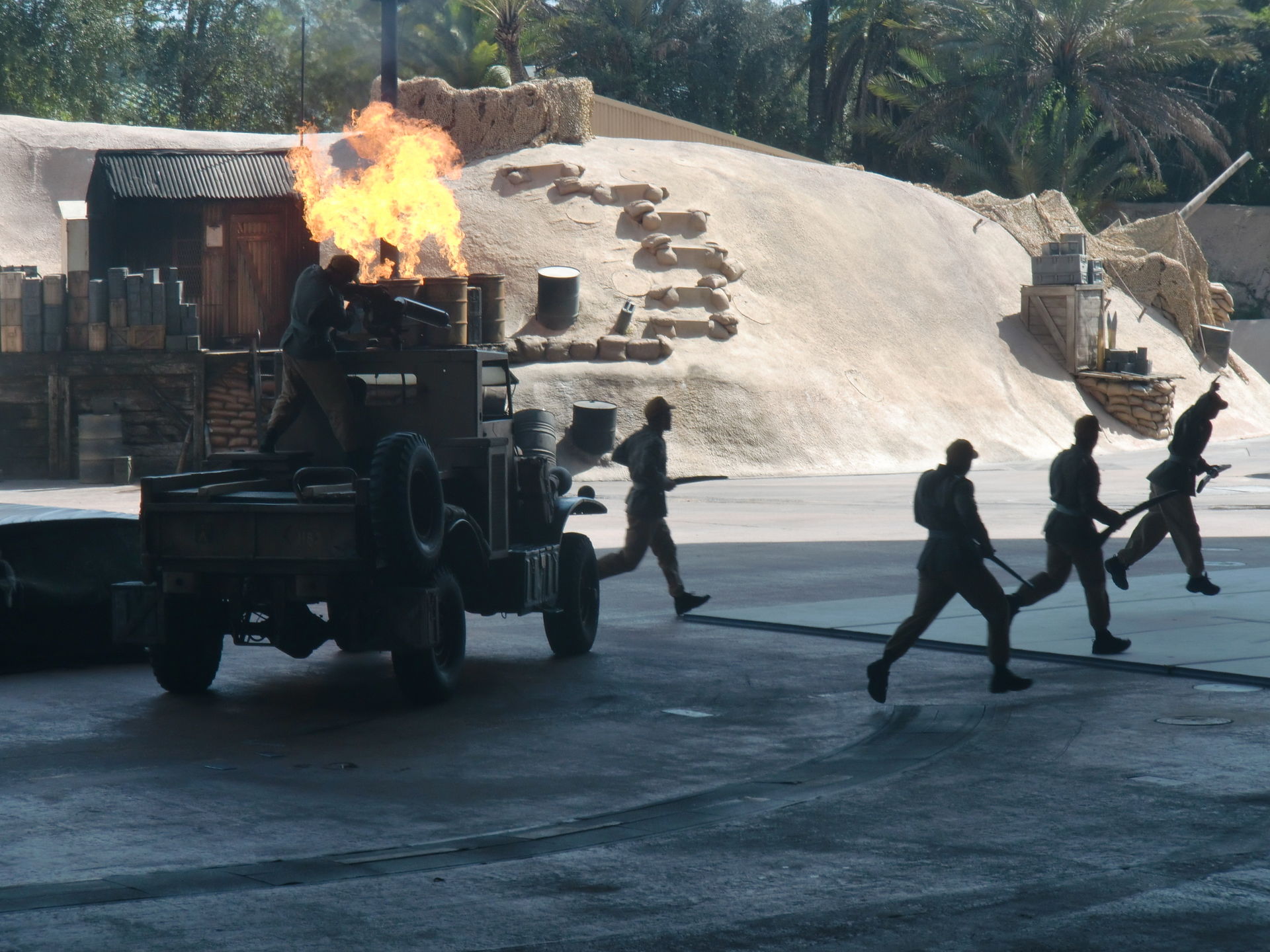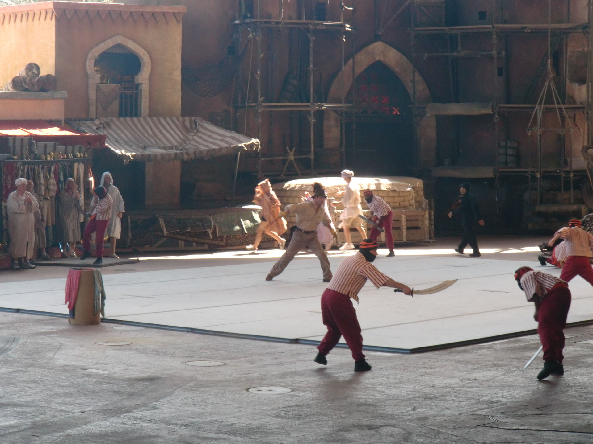 Danach wird die Tempelkulisse einfach weggefahren und Indy darf sich ein bisschen mit den Wüstenschlägern aus "Jäger des verlorenen Schatzes" vergnügen.