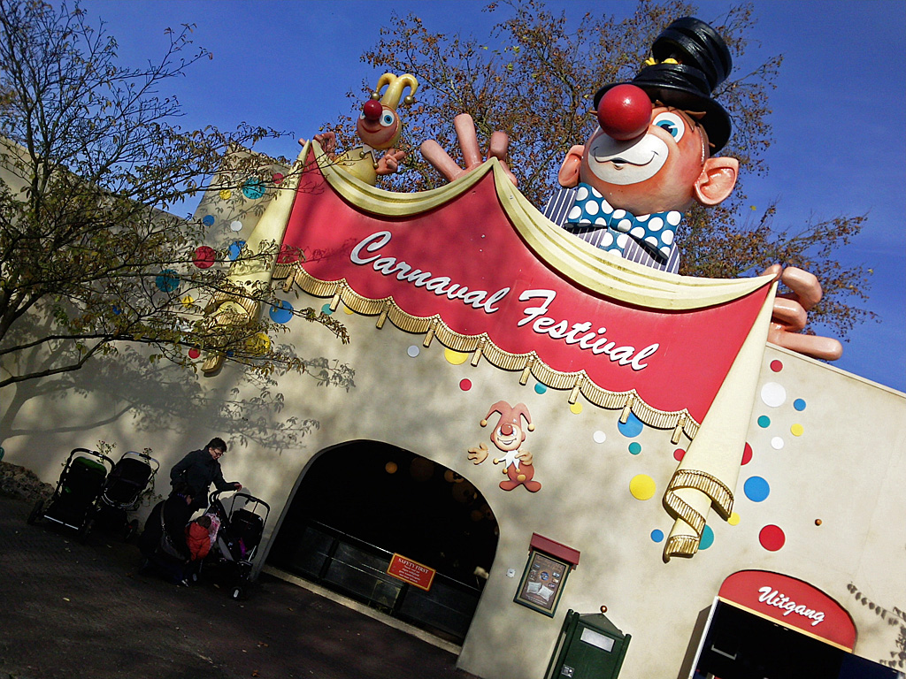 Ich hielt diese Attraktion bei meinen vorherigen Besuchen für eine Kinder-Zirkus-Show! Tatsächlich handelt es sich um eine kindgerechte (Weltreise-)Themenfahrt. Die ist so extrem bunt, dass es schon fast gruselig ist.