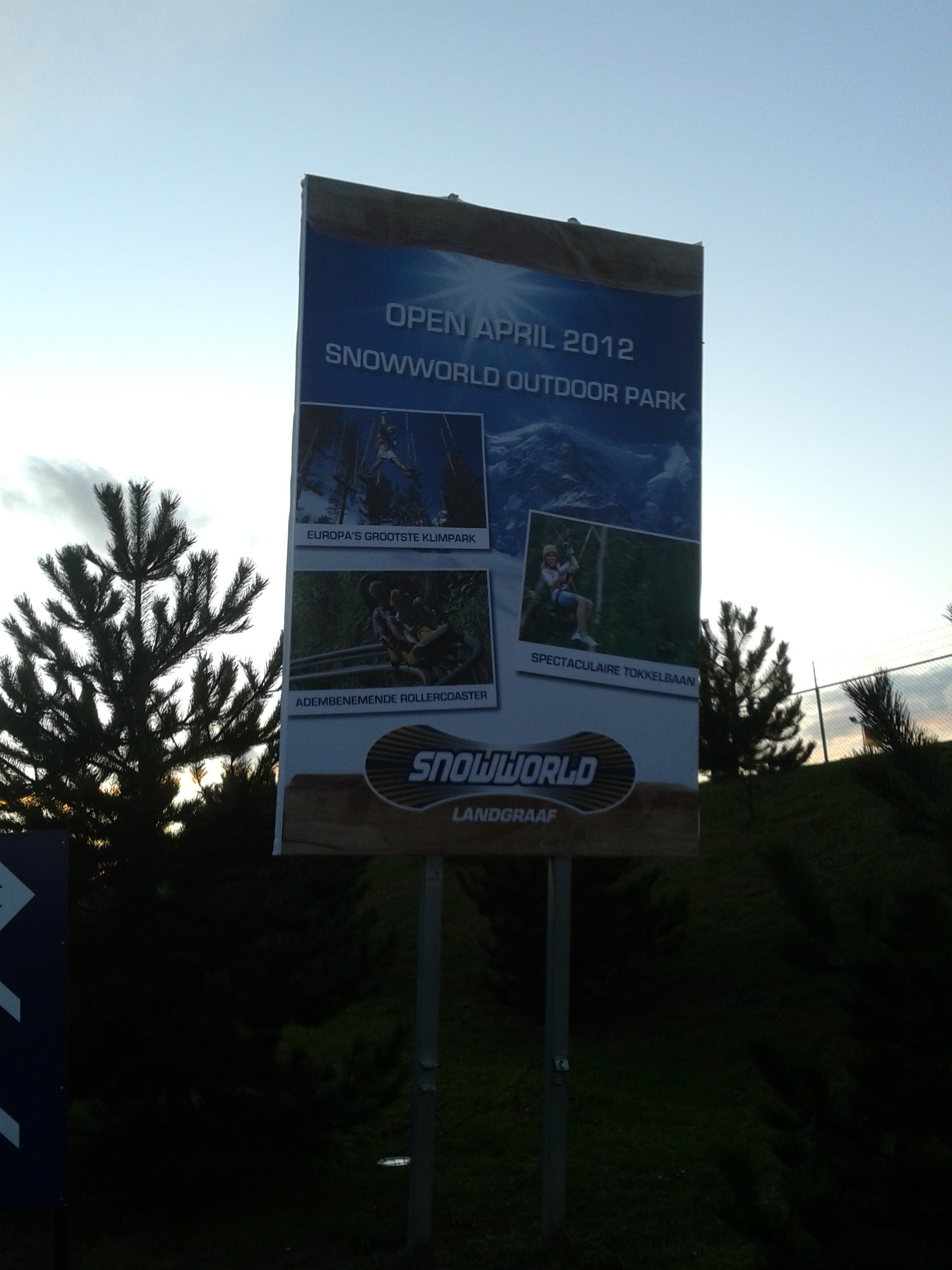 Ich habe vor einiger Zeit mal bei themepark.nl gelesen, dass bei SnowWorld in Landgraaf unter anderem ein Alpine Coaster gebaut werden soll. Daher bin ich mal hingefahren und habe nachgesehen und vor Ort sind bereits Plakate und ein Wagen des Alpine Coasters zu sehen. Eröffnung soll laut der Plakate im April 2012 sein. Darüber hinaus wird dort auch noch ein Hochseilgarten gebaut.