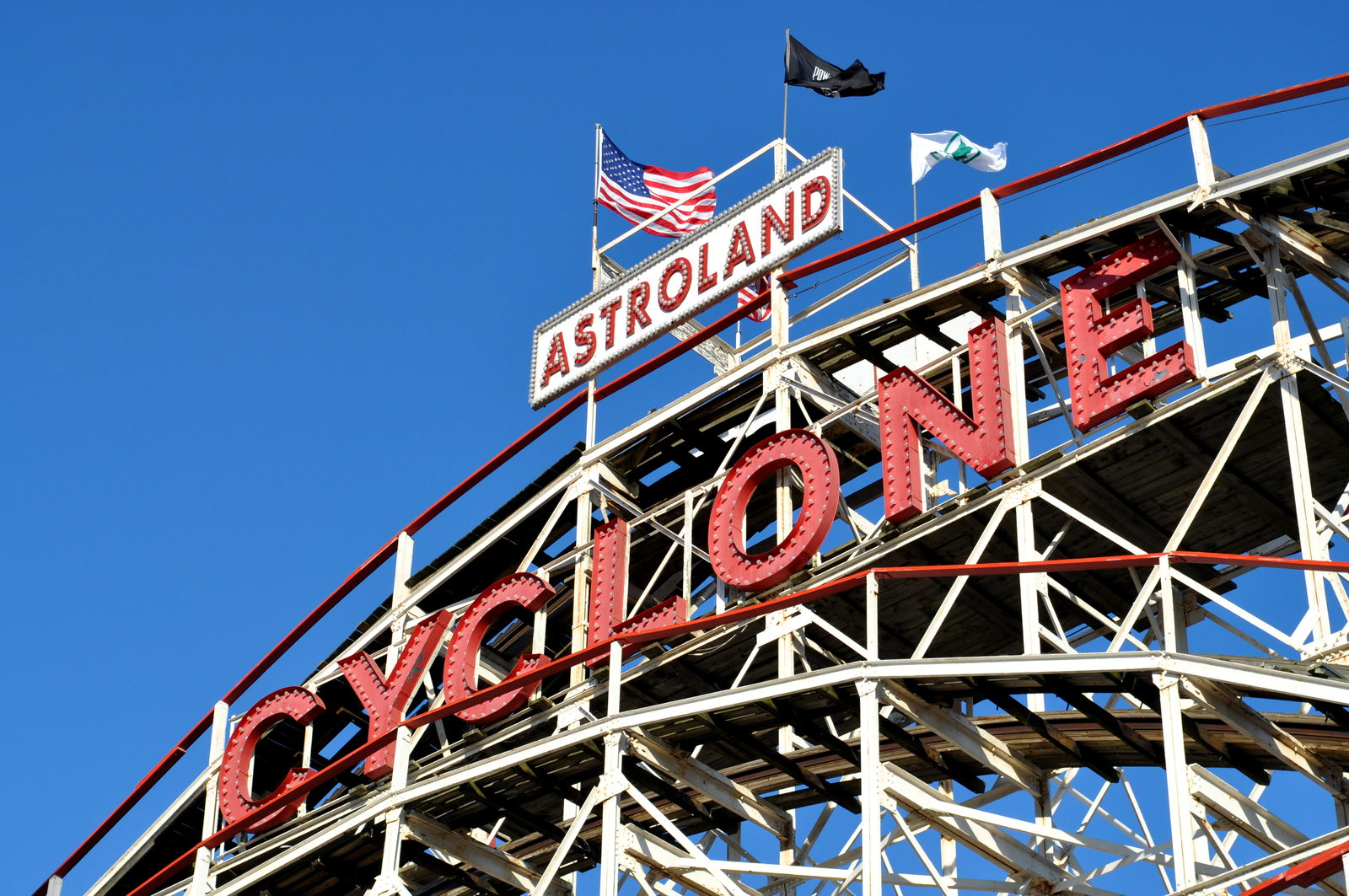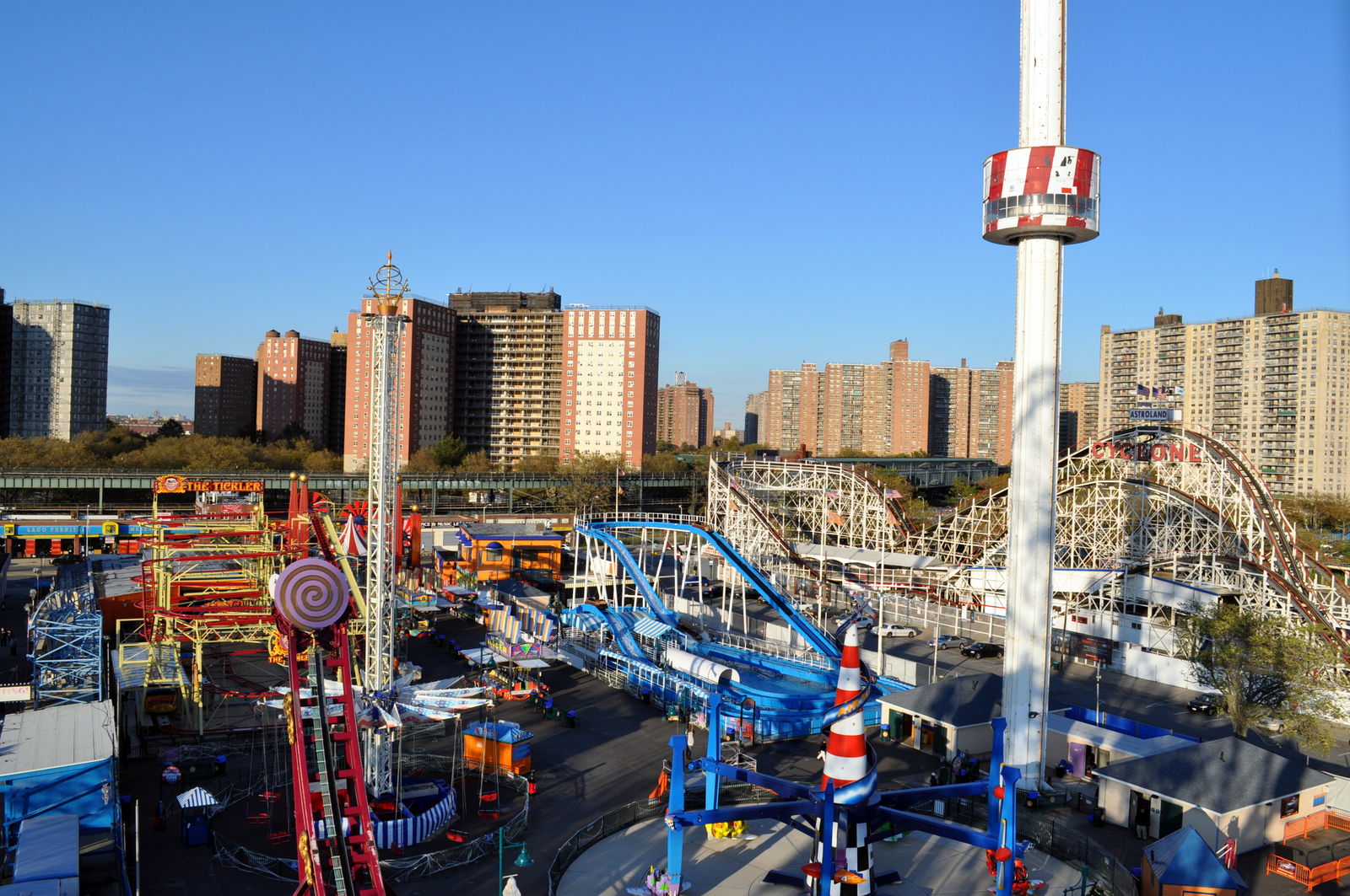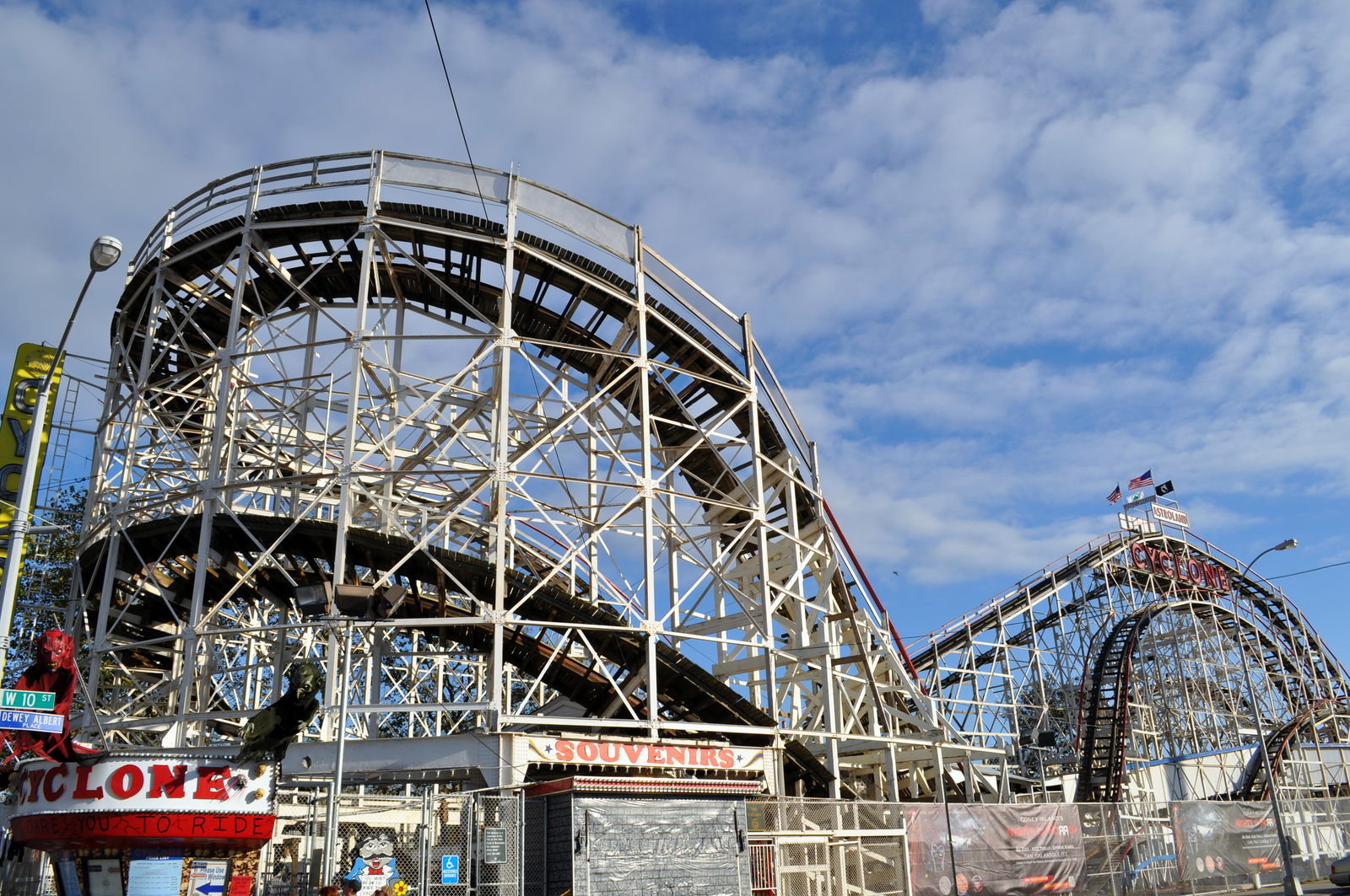 Dann war Zeit für Action, also bin ich dort in den Freizeitpark gegangen. Dass dieser schon etwas älter ist dürften die meisten hier ja wissen. Manche Sachen waren total heruntergekommen, aber es gab auch coole Sachen die ich noch nie gesehen hab. Allen voran natürlich das Wonder Wheel. Aber ich bin dann erstmal durch gelaufen zum Objekt meiner Begierde: Cyclone! 1927 erbaut, für Fans wie uns absolutes Pflichtprogramm! Jo, was war? Alles abgesperrt und das Ticket Häuschen war zu!