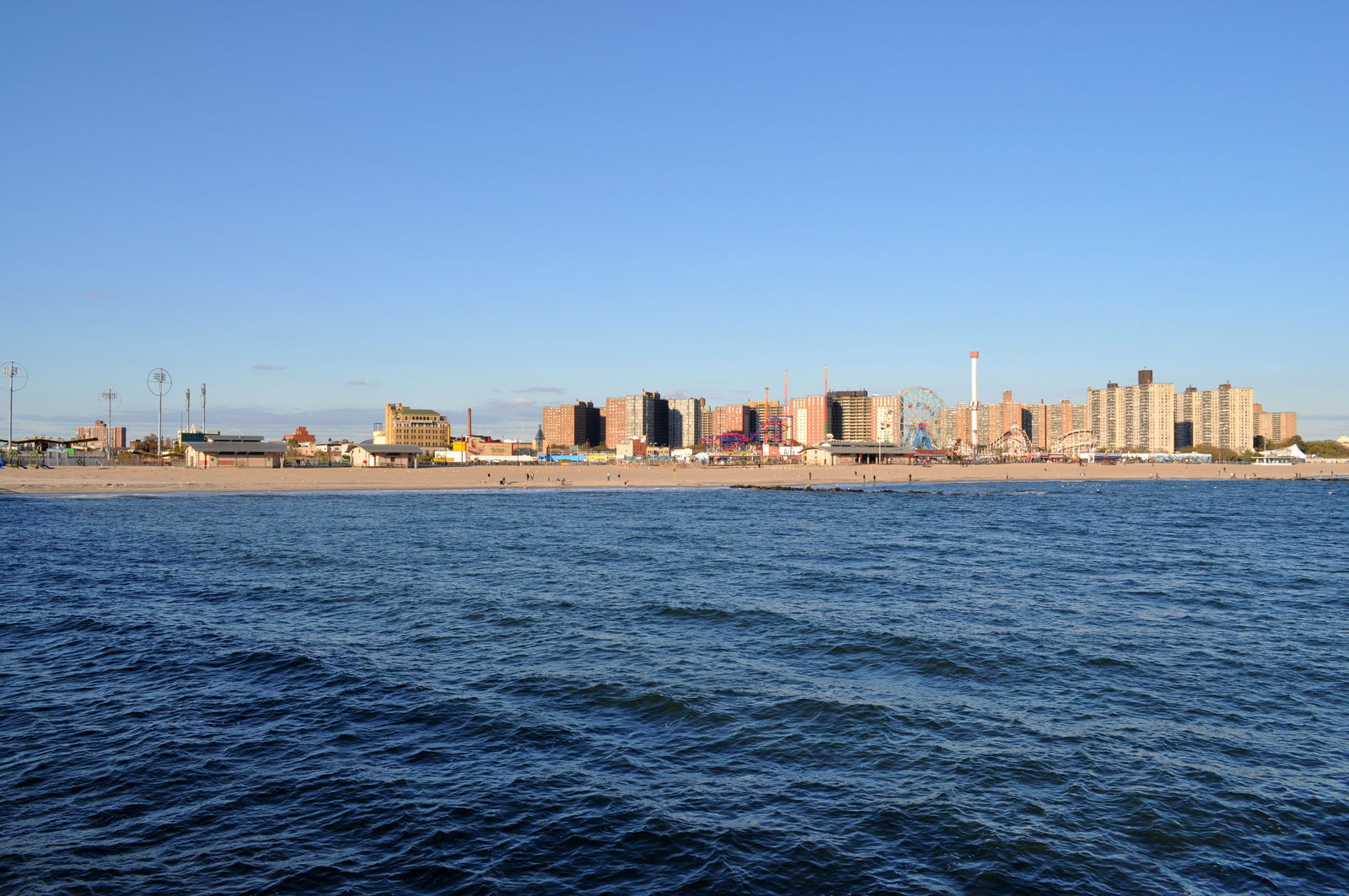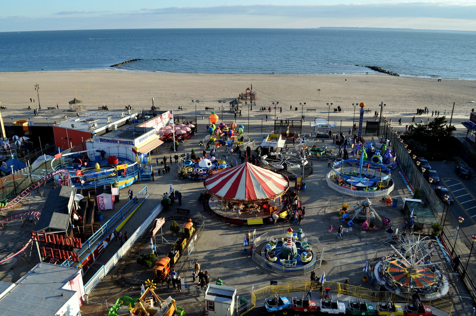 Das Wonder Wheel wollte ich dann aber doch mal ausprobieren. Eine Fahrt hat 6$ gekostet, alles andere 3$. Hab nen 20er gegeben und 14 zurück bekommen, eine Fahrt halt. Hatte aber 2 Karten, dachte vielleicht ist eine Karte 3$ wert wegen den anderen Fahrgeschäften und hab mich angestellt. Als der Typ mich dann abkassiert hat, hat er gefragt ob ich alleine fahre. Da hab ich mich umgeschaut, kein Mensch außer uns beiden da. Dann hab ich ihn gefragt ob Spiegelreflexkameras auch Eintritt kosten, ansonsten bin ich alleine. Da hat er gelacht und gemeint, wenn ich nur eine Fahrt machen will, gibt er mir 6$ wieder zurück. Hat er auch gemacht, eine Fahrt kostenlos!