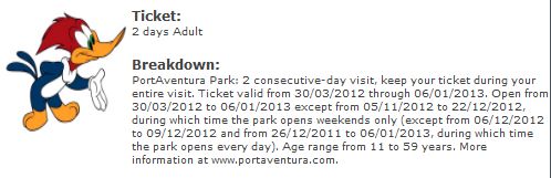 Das Zwei-Tagesticket zu 54 Euro beinhaltet nur den Port Aventura-Freizeitpark.