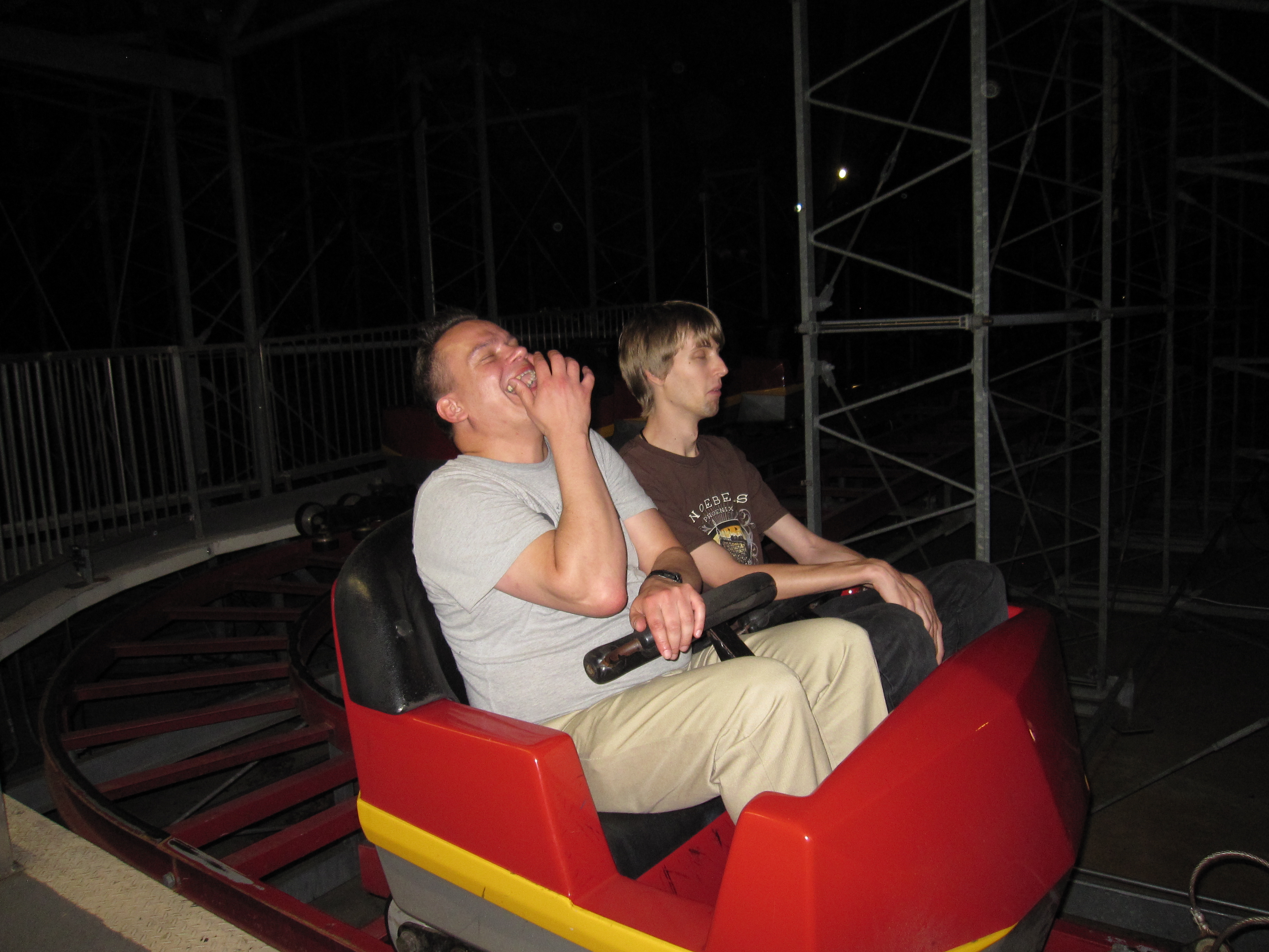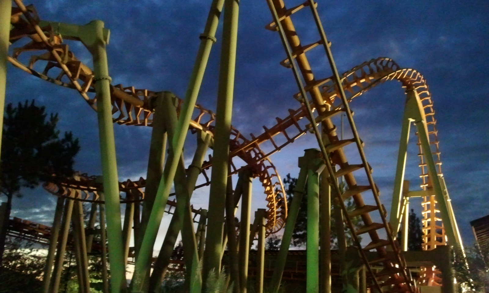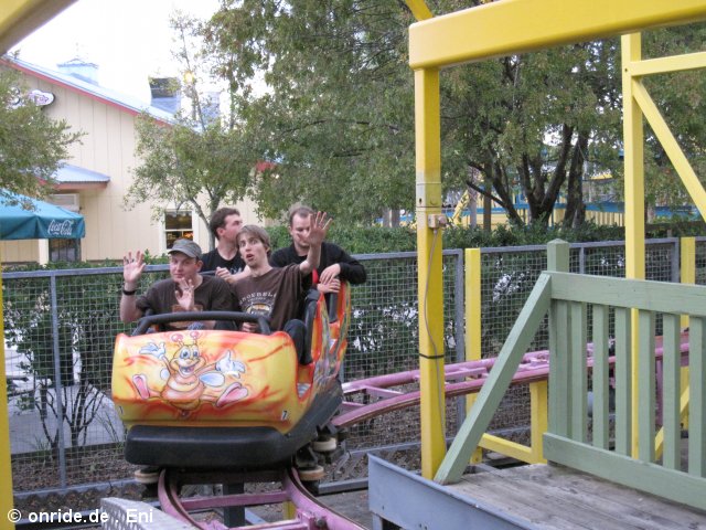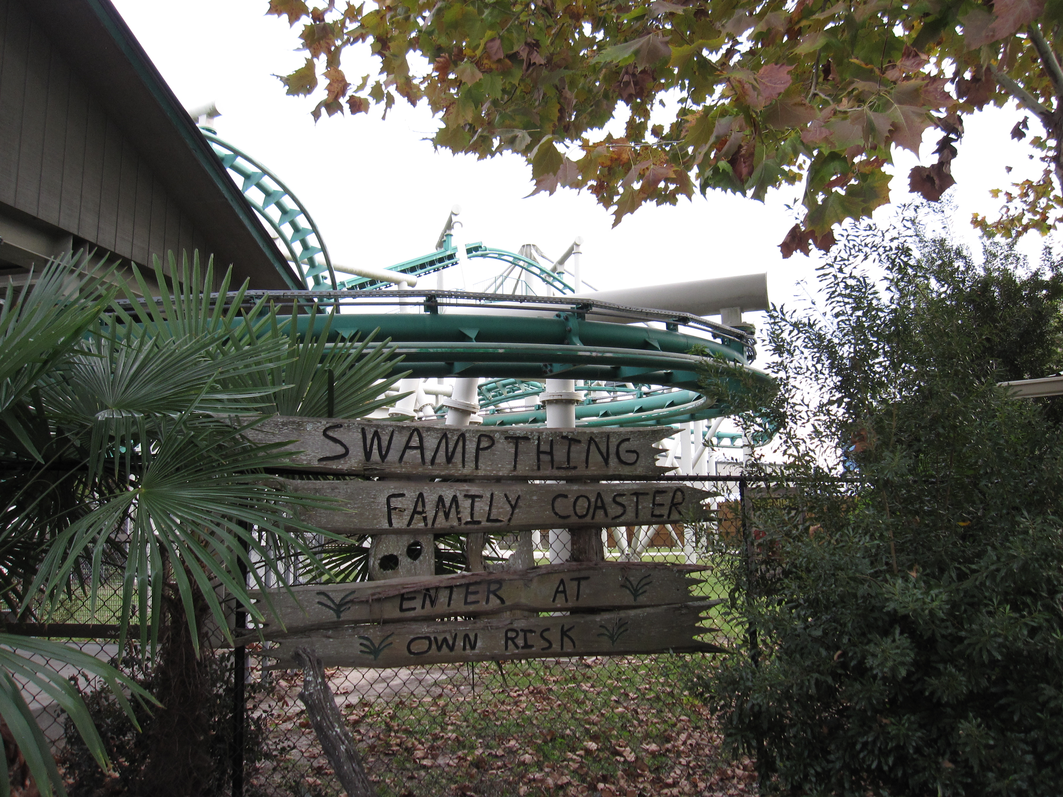 Wie gesagt: Das besondere an dem Park waren sicherlich nicht die Achterbahen. Es war vielmehr das faszinierende Flair am späten Abend. Der Park machte fast pünktlich nach unserer Ankunft um 17 Uhr erst auf. Und vom restlichen Publikum hatte man eher den Eindruck, als sei es eine Art Gemeindefest zu dem die Nachbarschaft Abends noch mal aus dem Haus geht. Alles weit weit weg vom jeglichem Freizeitparkstress. Hinzu kommt noch "Phobia - The Legend Of The Blackwater Swamp". Ein grandioser Halloween Pathway durch einen echten Wald mit Sumpf.