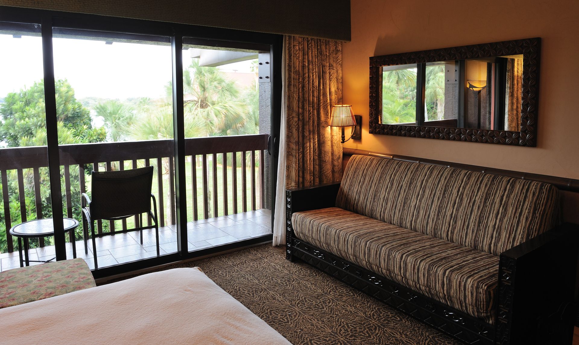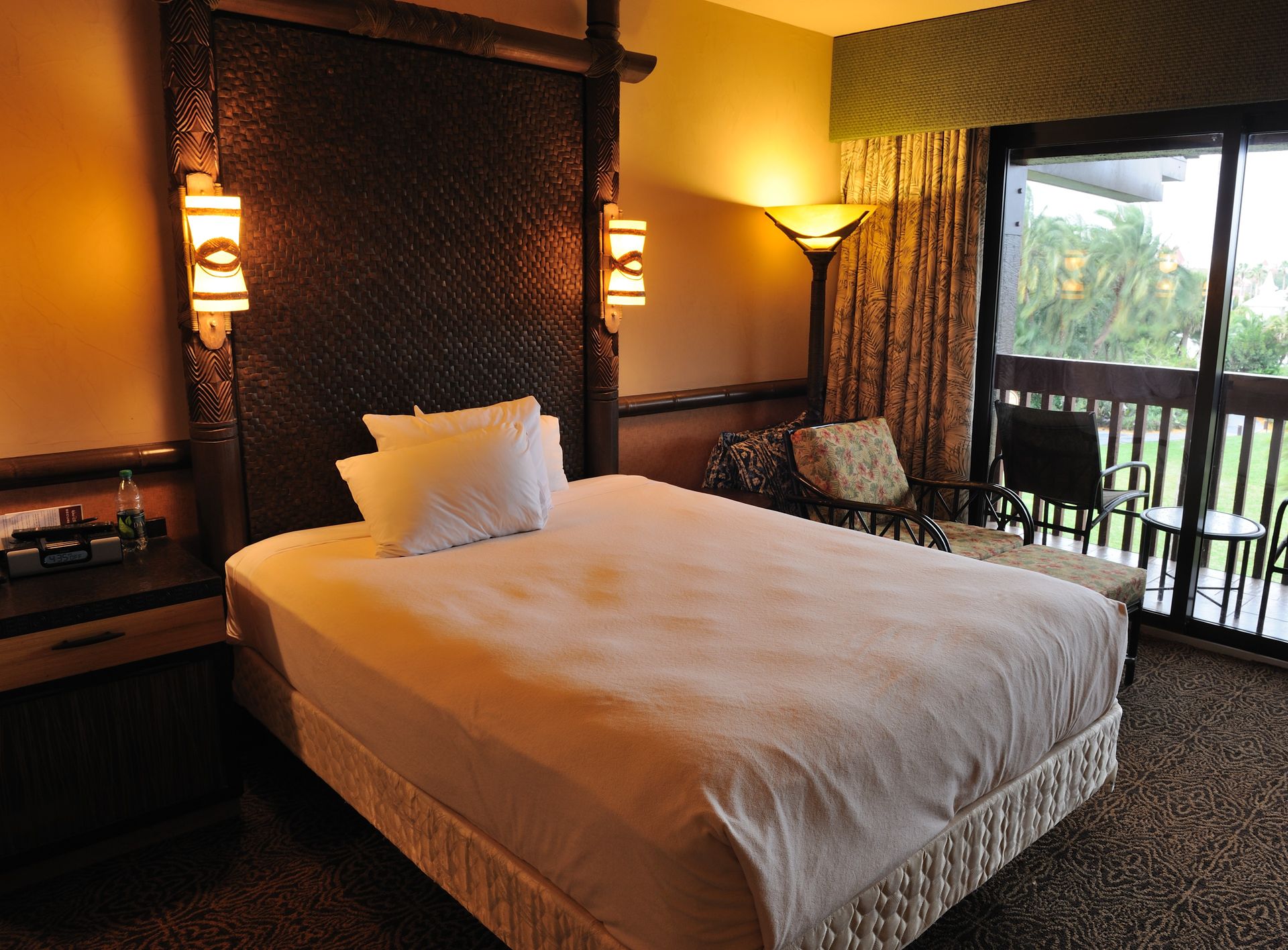 Die Zimmer im Polynesian sind wirklich schön gestaltet und außergewöhnlich groß. Auf dem Balkon zu sitzen und in der Ferne das Grand Floridian und Cinderella Castle zu sehen, hat auch etwas. Und der Geheimtipp ist das Zimmerfrühstück, es geht doch nichts über einen Frühstücksbagel, heißen Kaffee und frische Früchte in den „eigenen vier Wänden“, ohne dass hunderte Leute um einen herum springen.