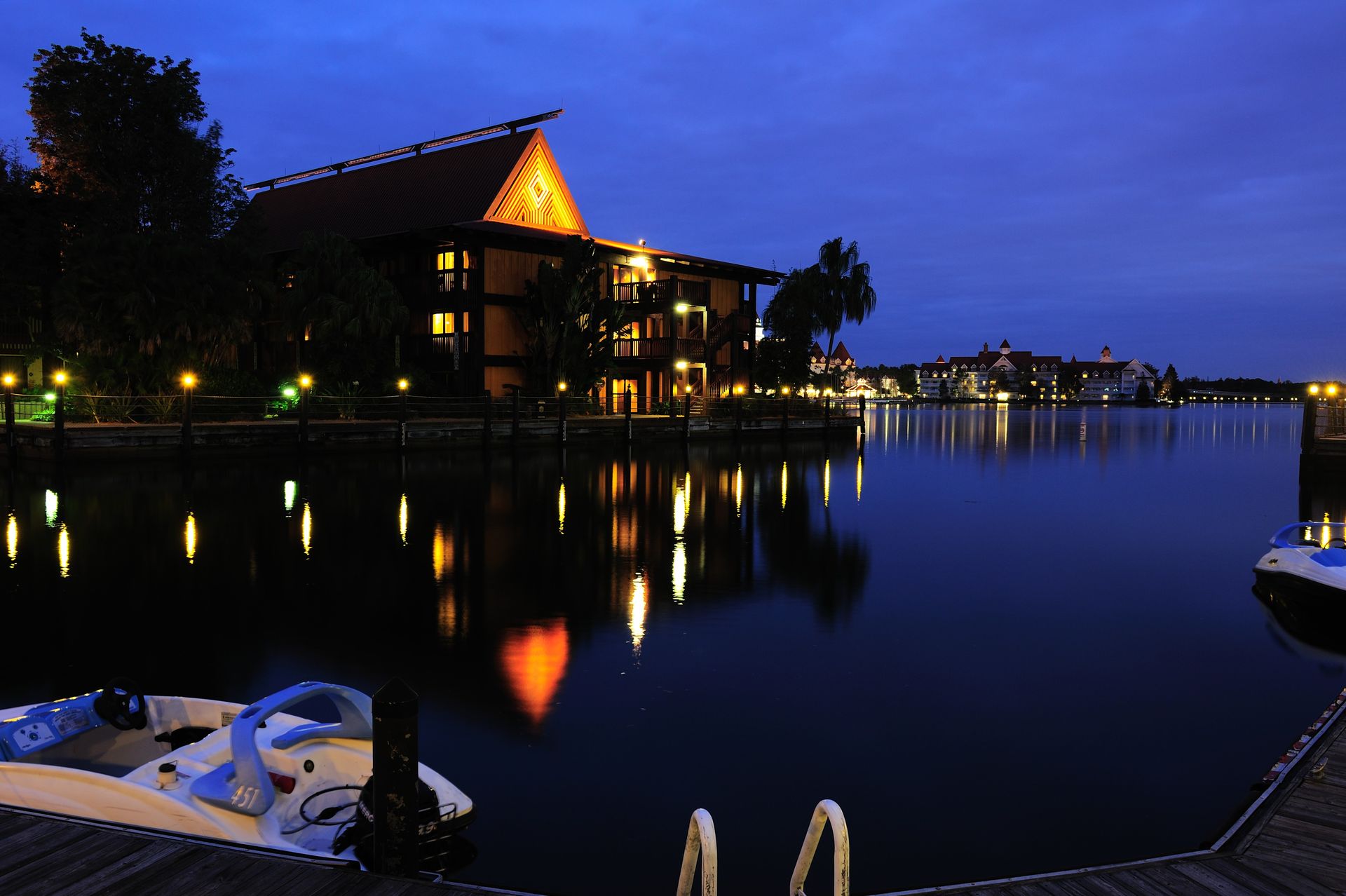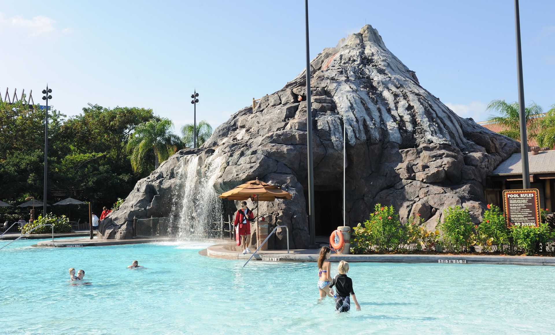 @Daniel, @Bjoern: Das Baden am Strand des Polynesian Resort ist mittlerweile aus Sicherheitsgründen verboten. Nicht aber wegen etwaiger Alligatoren -- das Gewässer ist 100% künstlich, und das Gelände eingezäunt -- sondern wegen des regen Schiffverkehrs: die Lagune teilen sich Fähren, Transferbote aber auch Gäste, die mit gemieteten Booten unterwegs sind. In den Anfangsjahren war das Baden übrigens erlaubt, es gab sogar eine Wellenmaschine, die das Surfen am Polynesian Resort erlaubte. Allerdings war die Erosion der künstlichen Strände zu stark, so dass man die Idee sehr schnell aufgegeben hat.