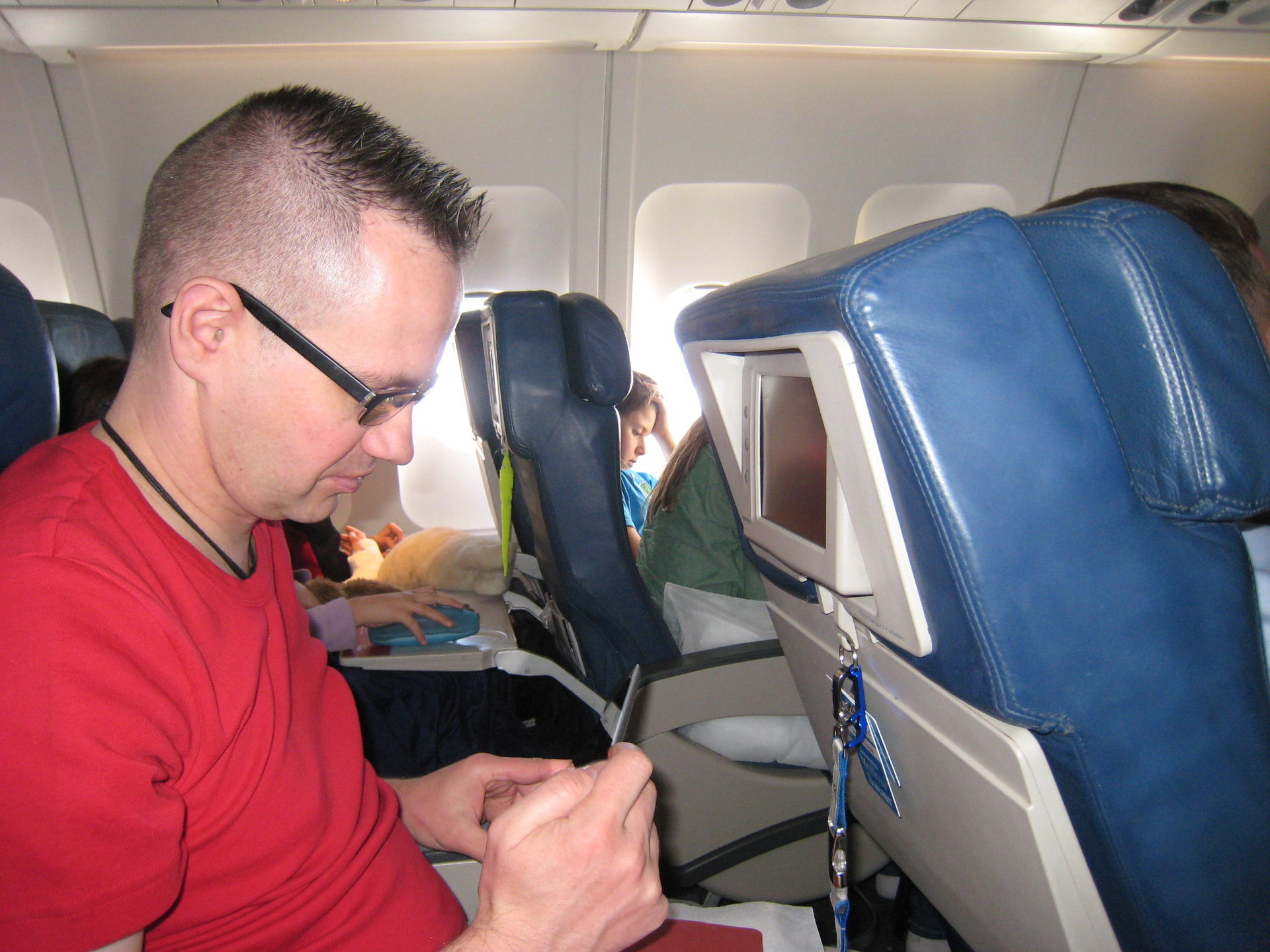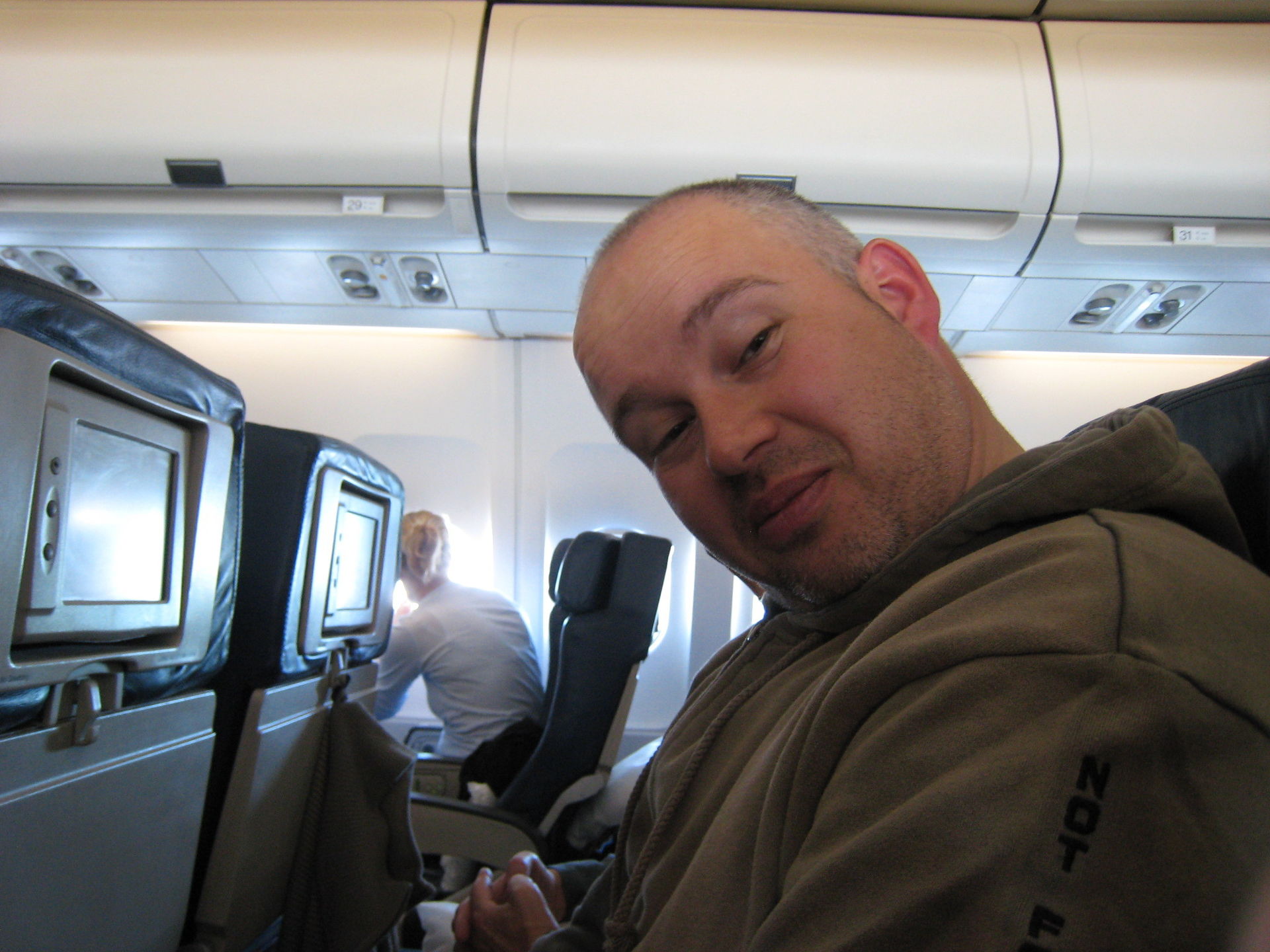 Mein linker Sitznachbar und auch Zimmernachbar für die nächsten 2 Wochen: Volker (und sein IPad).
