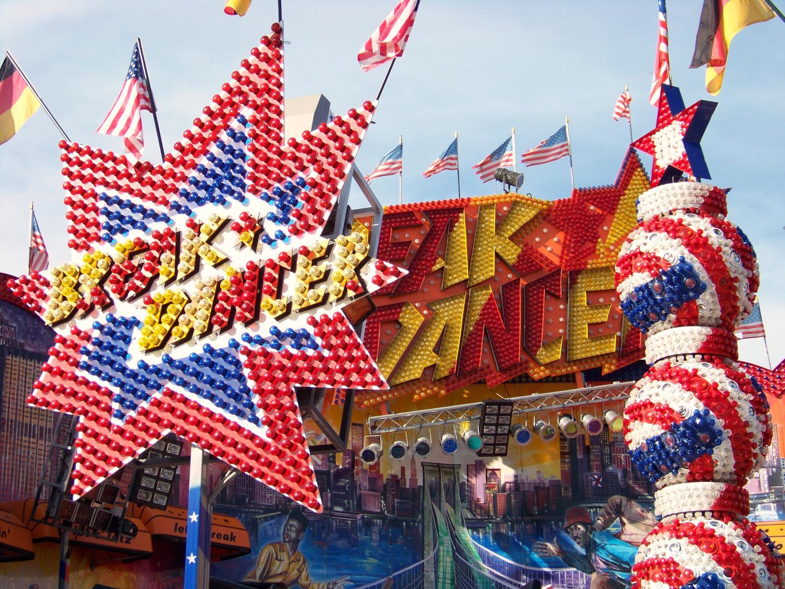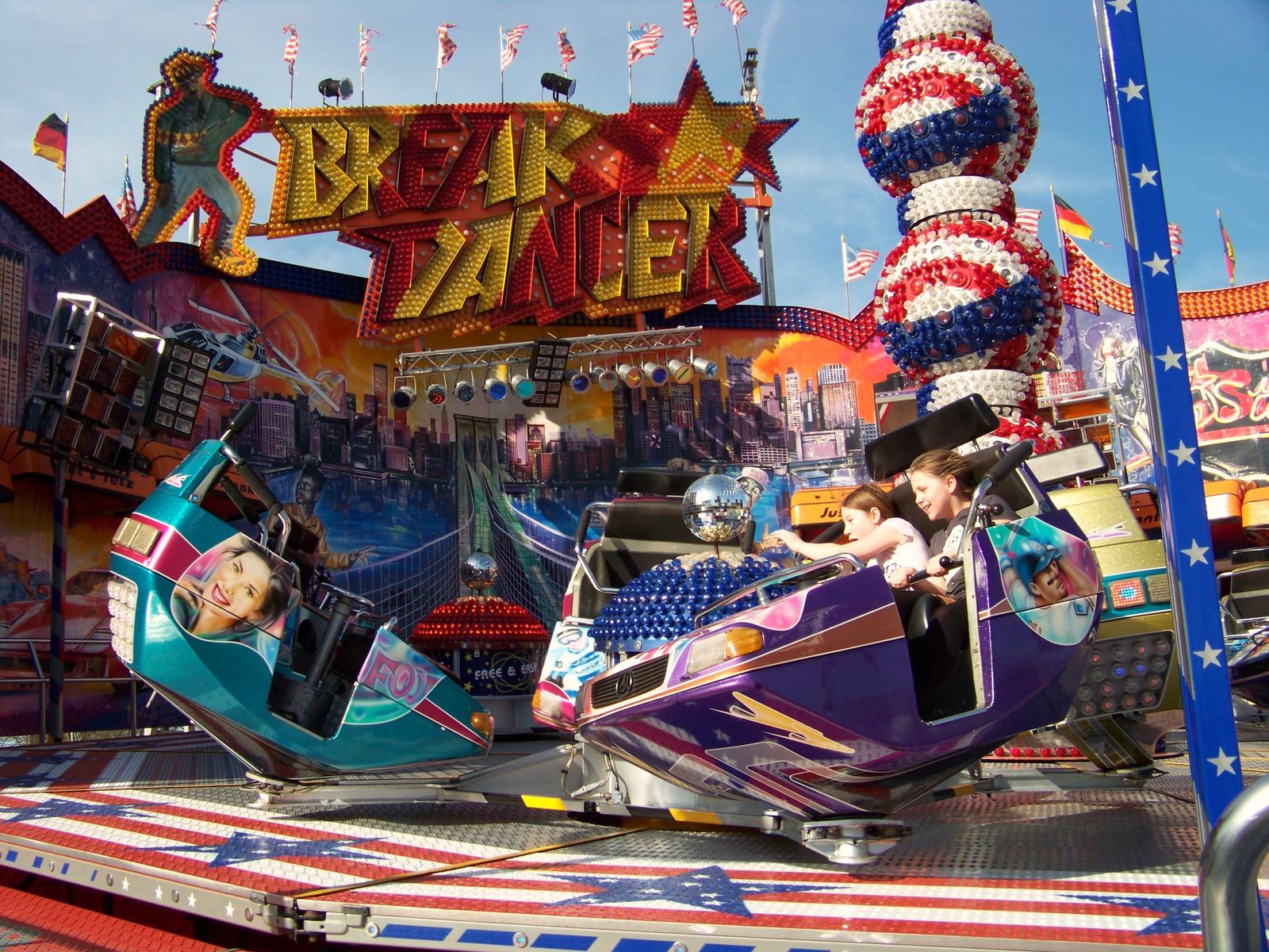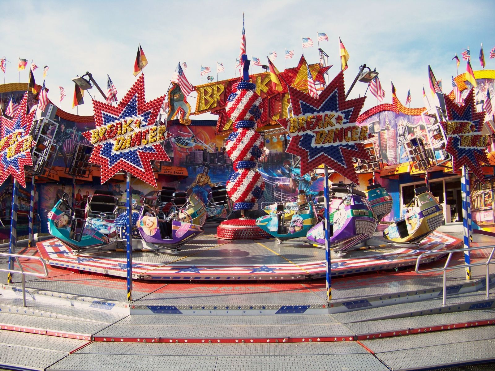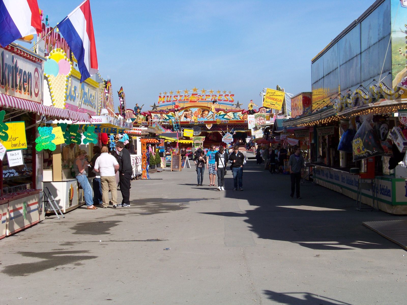 Wie erwartet war am heutigen Montag nicht wirklich viel los auf der Kirmes an der Radrennbahn. Trotzdem wollte ich das sonnige Wetter nutzen, um dort ein paar Bilder zu machen und seit längerem mal wieder den Engelbecht-Breaker zu fahren, der nachwievor mit zu den besten Breakern gehört, die in Deutschland unterwegs sind. Außer besagtem Breaker waren noch das Movie Star-Riesenrad von Henschel, Krauses Musik Express, Crazy Dancer, Flying Swing, Simulator und das Laufgeschäft Domino vertreten. Bedingt durch die Booster-Absage eine etwas dünne Beschickun in diesem Jahr, aber immerhin mit einem exzellenten Breaker, den man in der Region nicht so oft antrifft.