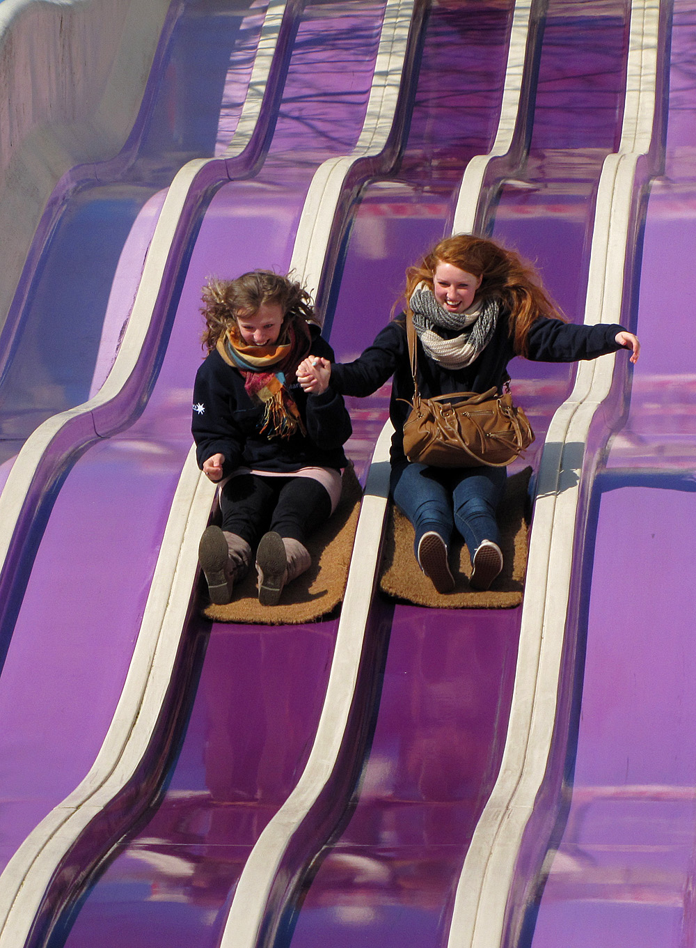 Auch für große Kinder ein Spaß: Die Mattenrutsche.
