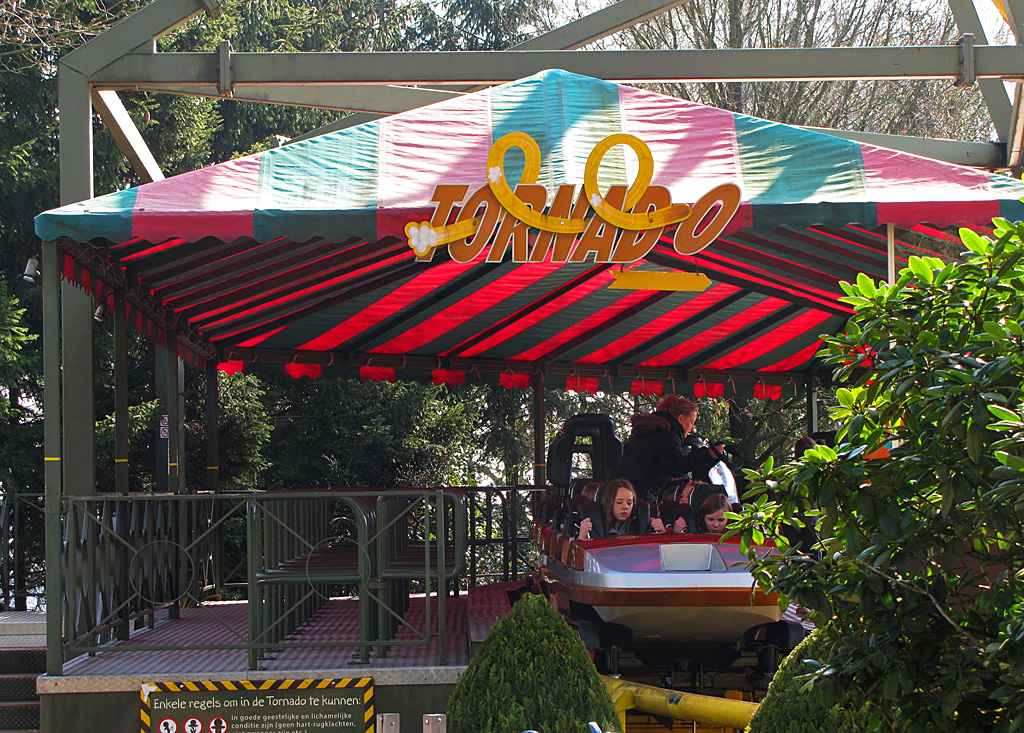 Kommen wir nun zur größten Achterbahn im Park, dem Tornado. Thematisierung gegen Null. Dafür liegt er idyllisch direkt im Wald.