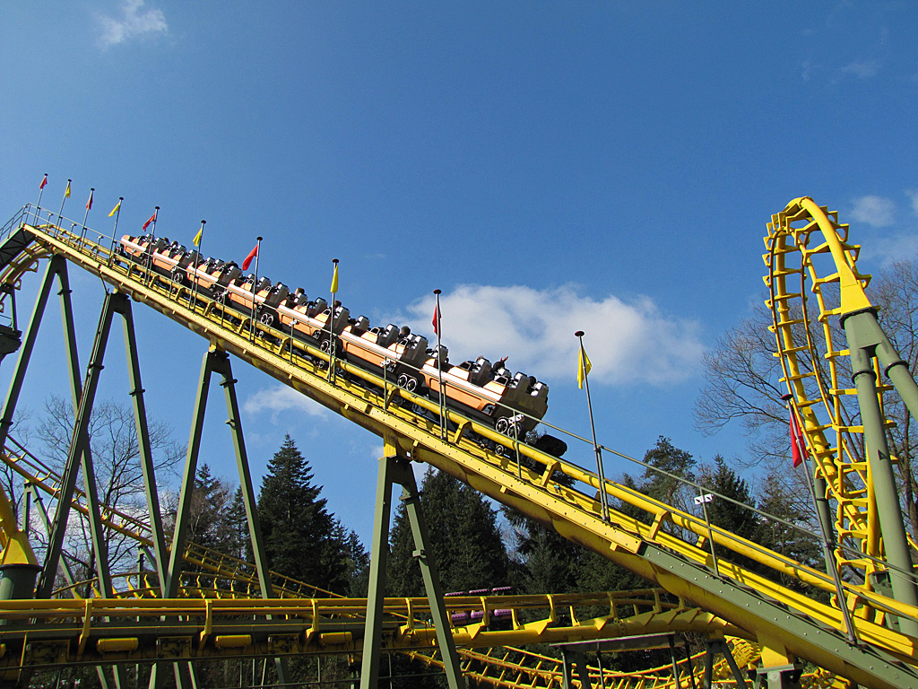 Es ist ein Standard-Looping-Coaster aus dem Hause Vekoma, der hier in den 90er-Jahren in den Park kam.
