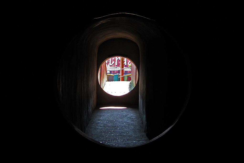 Um wieder an die Oberfläche zu gelangen, muss man durch *das Loch* kriechen.