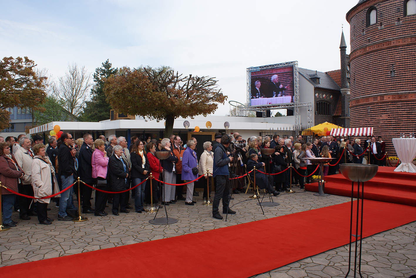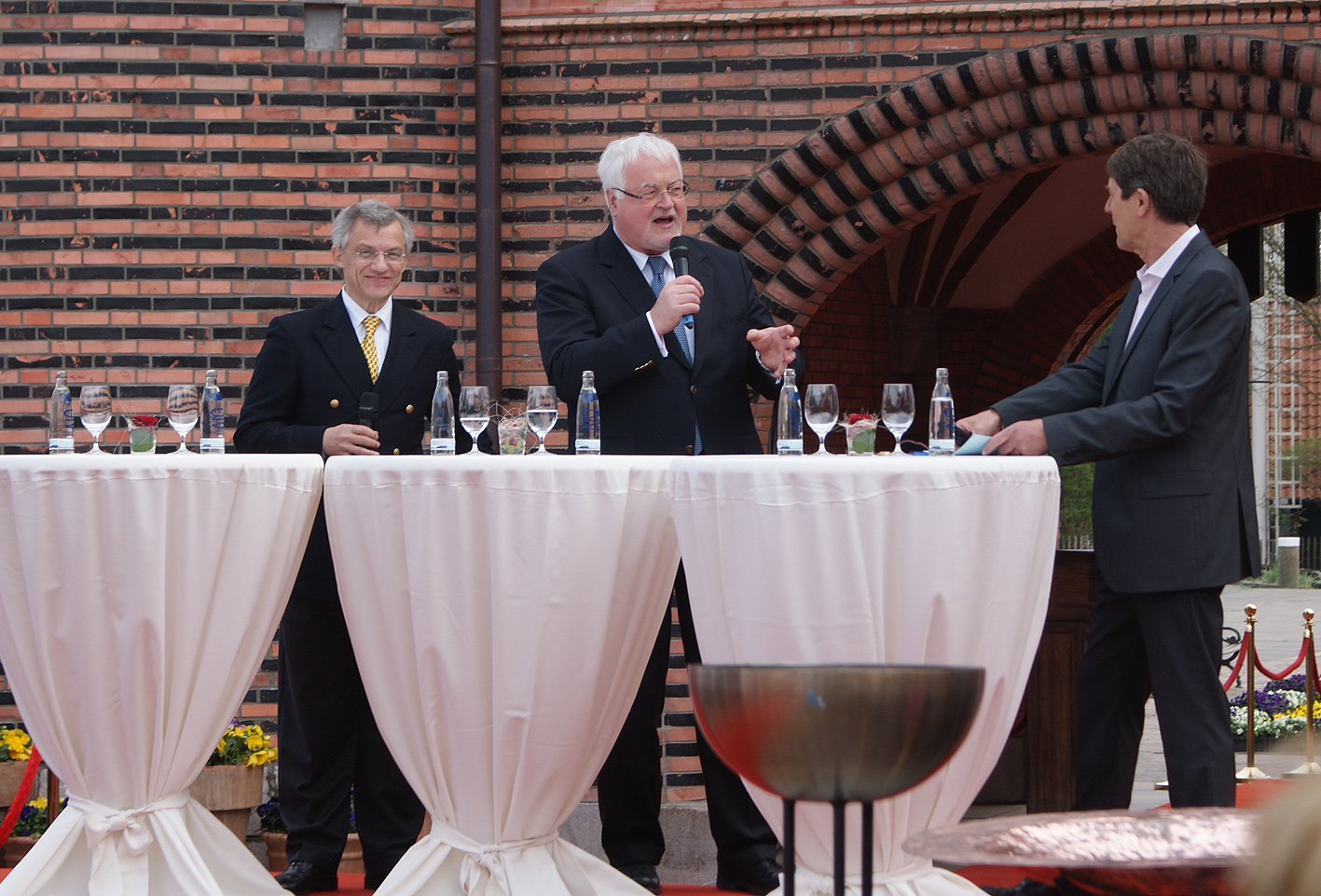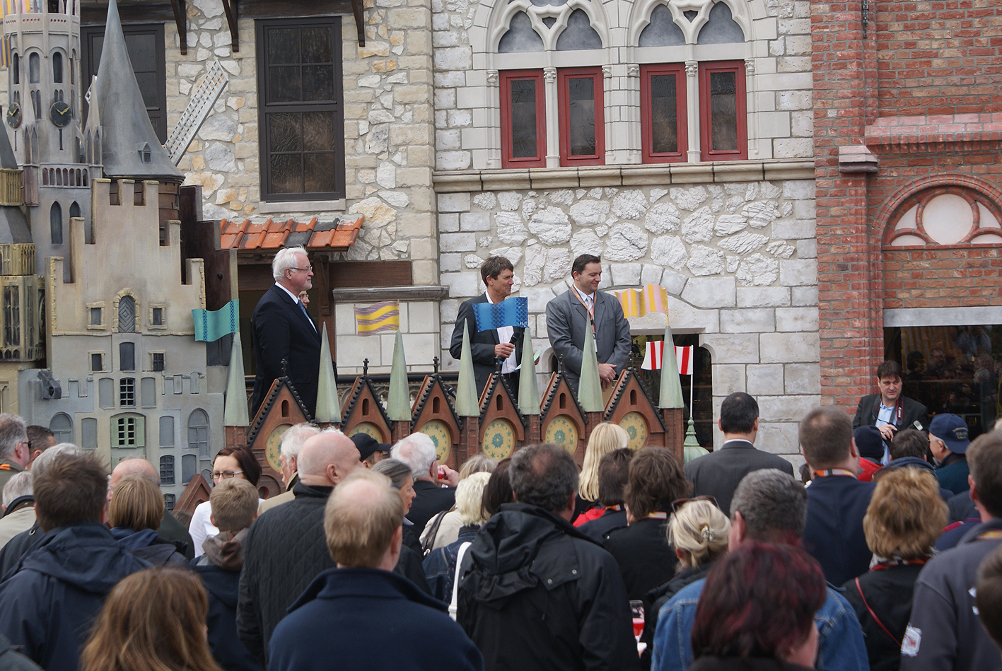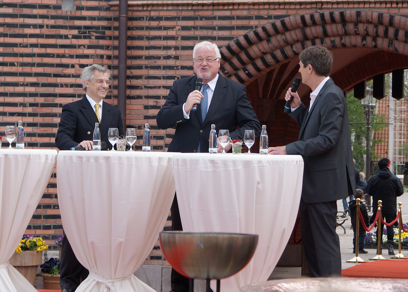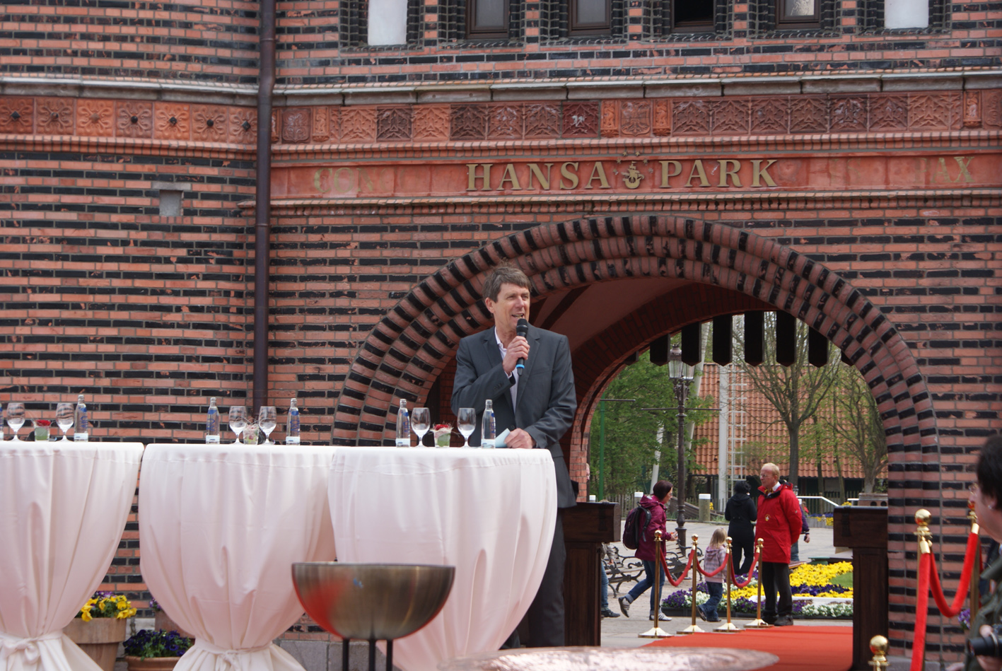 Pünktlich um 12.30 Uhr eröffnete der Moderator (Christian Schröder vom NDR) die Veranstaltung mit einer kurzen Einführung und Anekdoten zur Hanse und dem Hansa-Park, bevor neben dem Hansa-Park Geschäftsführer Christian Leicht auch der Ehrengast Peter Harry Carstensen (Ministerpräsident Schleswig-Holstein) die Bühne betrat.