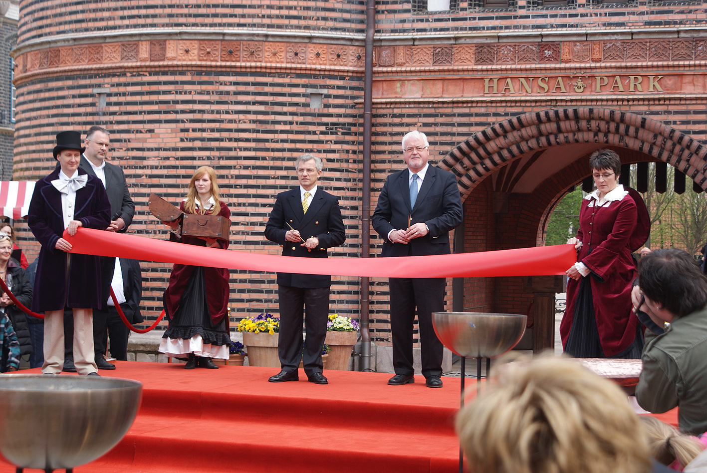 Nach dem Interview wurde ein rotes Band ausgerollt und von Peter Harry Carstensen und Andreas Leicht durchgeschnitten. Es folgten aufsteigende Luftballons und Konfettiregen. Anschließend durften die geladenen Gäste auf dem roten Teppich den Park in Richtung "Conference Center Hanse" betreten.