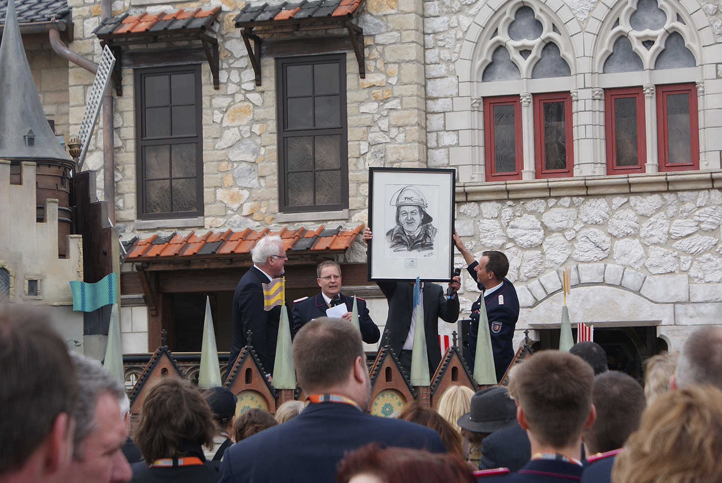 Vor dem Conference Center wurde der neue Paradewagen als Bühne genutzt. Dort wurde dem Hansa-Park das Platinsiegel "Service Champion" verliehen und Peter Harry Carstensen, der einen seiner letzten Amtstage hatte, für seine Bemühungen und sein Engagement für die Jugendfeuerwehr geehrt. Danach wurde das Buffet für die geladenen Gäste eröffnet. Zu genießen gab es Spezialitäten aus diversen Hansestädten, darunter Bergen, London und Ribe.