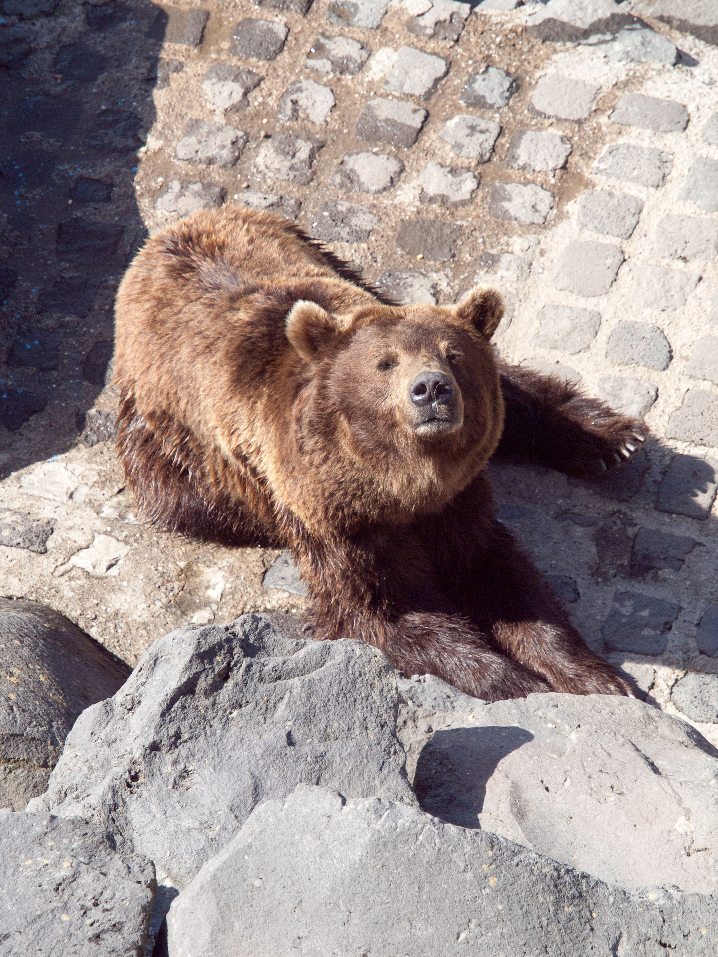 Direkt am Anfang befindet sich das Braunbärengehege, wo die Bären sich (in gegensatz zu uns) gerade eine Kühles Nass genehmigten.