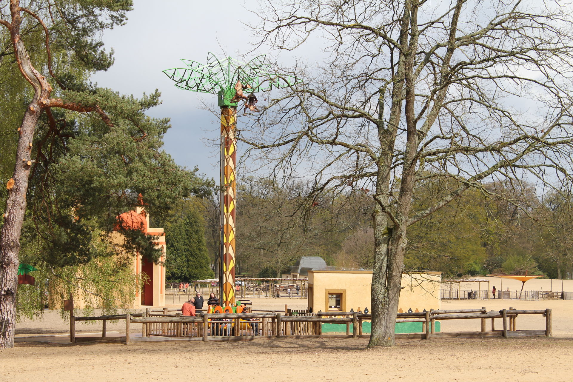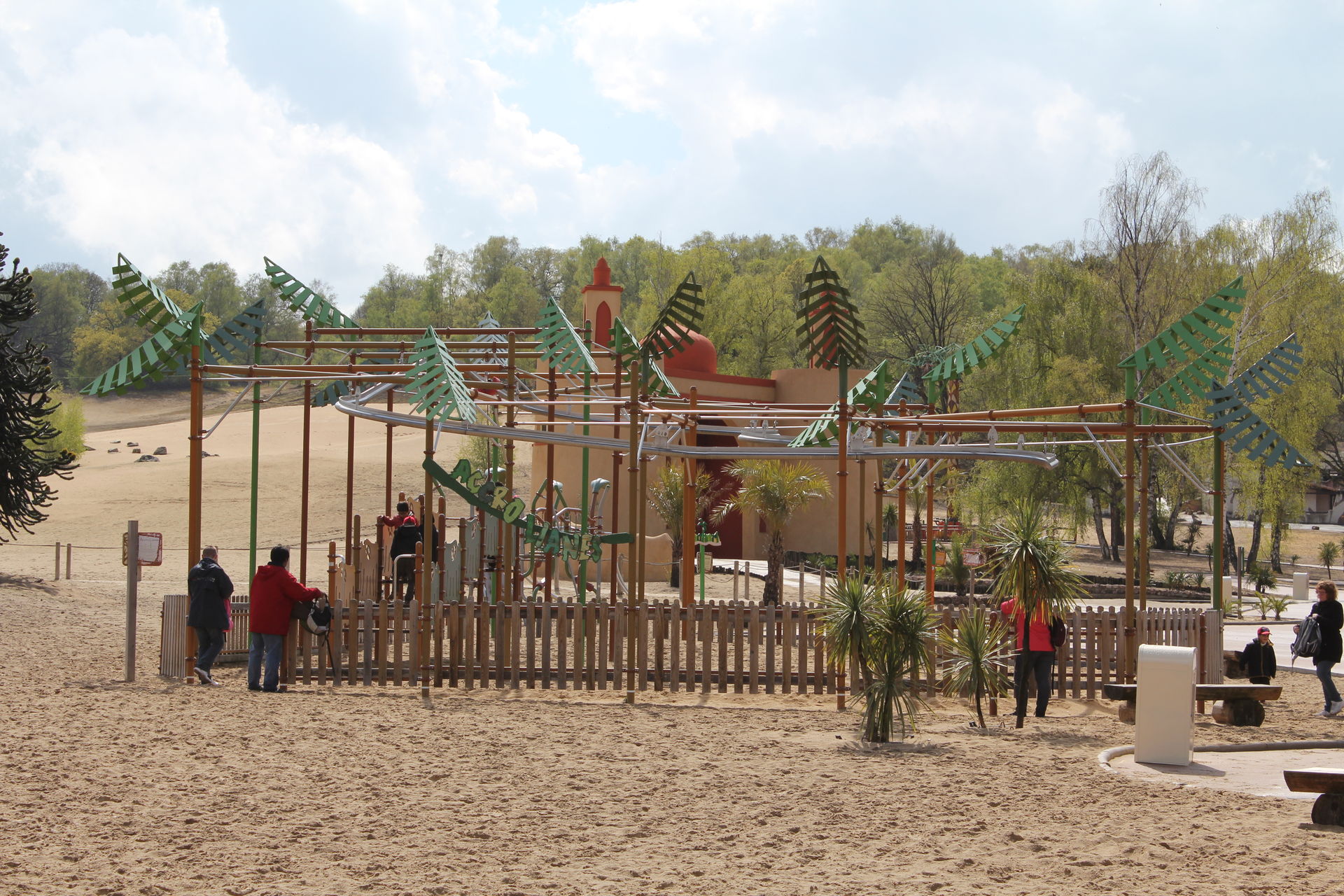 Neben der Seilbahn gibt es auch noch eine schön in die Landschaft integrierte Wasserbahn, ein nicht so fotogenes Rafting und einen Break Dance. Hier auf dem Bild ist natürlich keine Wasserbahn, sondern ein kleiner Freefalltower.