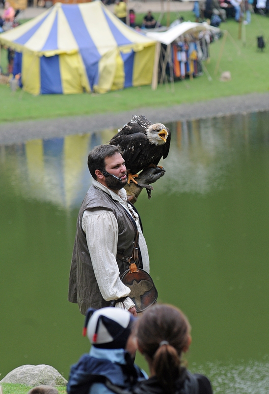 Die Mutigen werden Teil des Geschehens, lernen mit der Armbrust zu schießen, Papier zu schöpfen oder töpfern. Und hoch über den Köpfen des bunten Treibens kreist majestätisch der Adler.