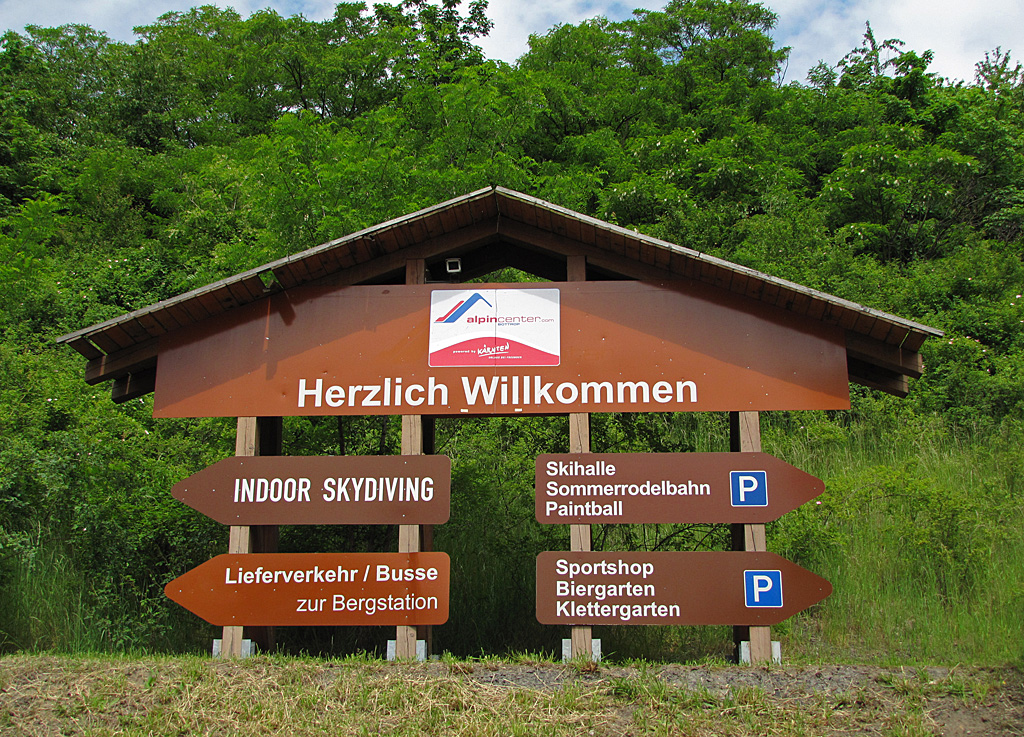 Trotz Wegweiser kann man sich als Erstbesucher verlaufen. Nimmt man als Fußgänger den Weg rechts (Richtung Sommerrodelbahn), muss man mit zahlreichen Steigungen und Kurven rechnen. Links wartet jedoch das laaaaaange Laufband.