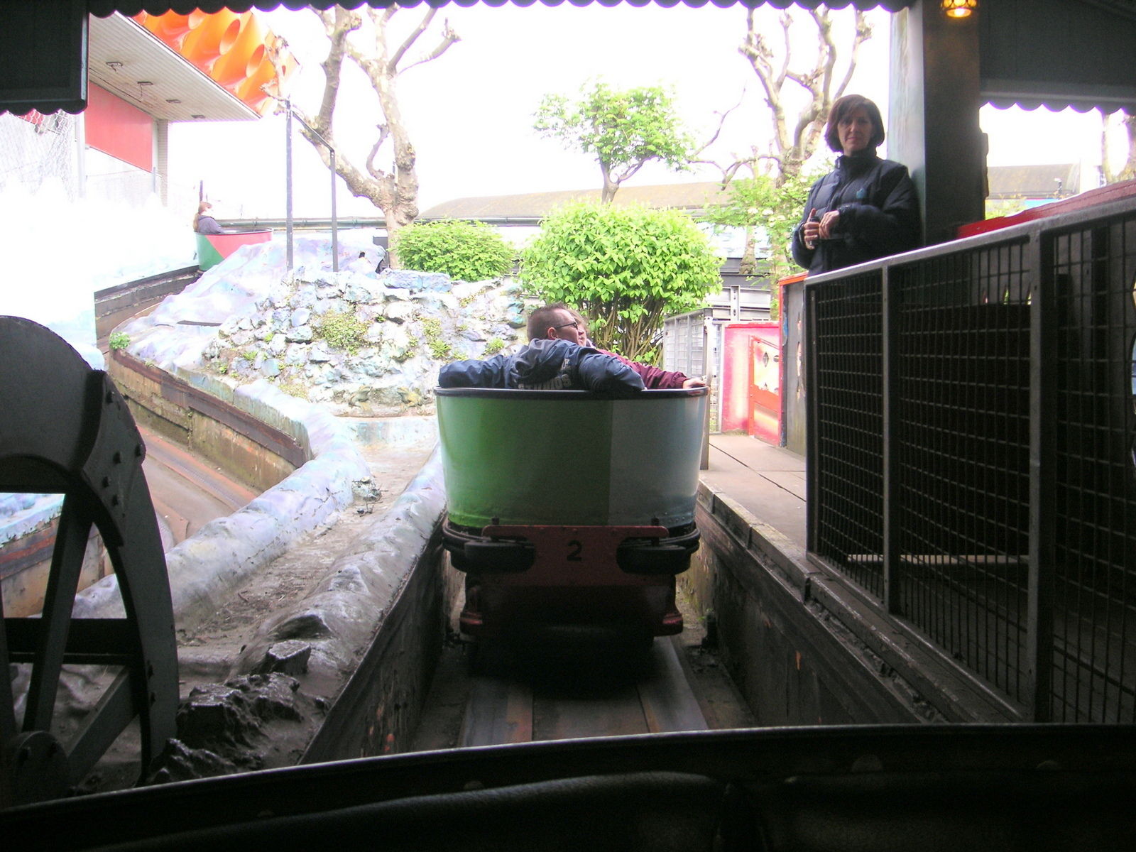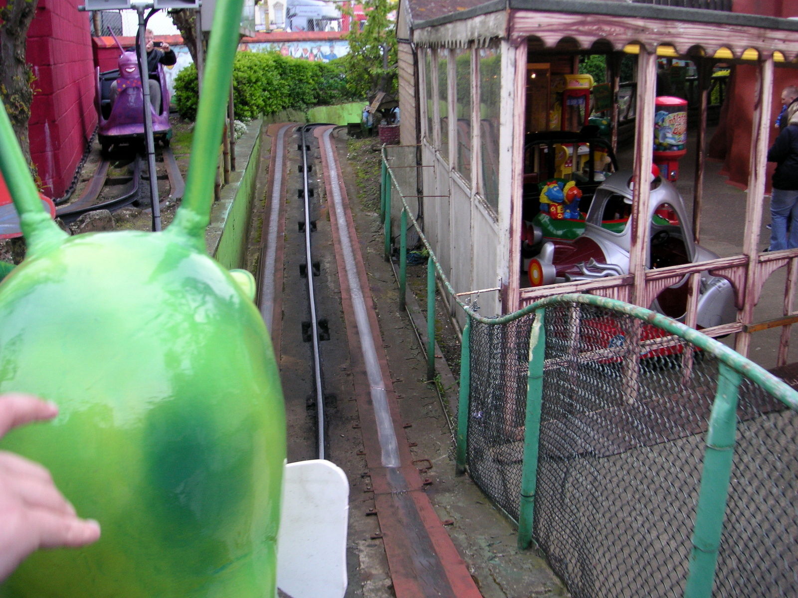 Die Bahn besteht nur aus Linkskurven. Ist nix wirklich besonderes. Die Bahn thront zum Großteil im oberen Stockwerk des zentralen Gebäudes im Park.